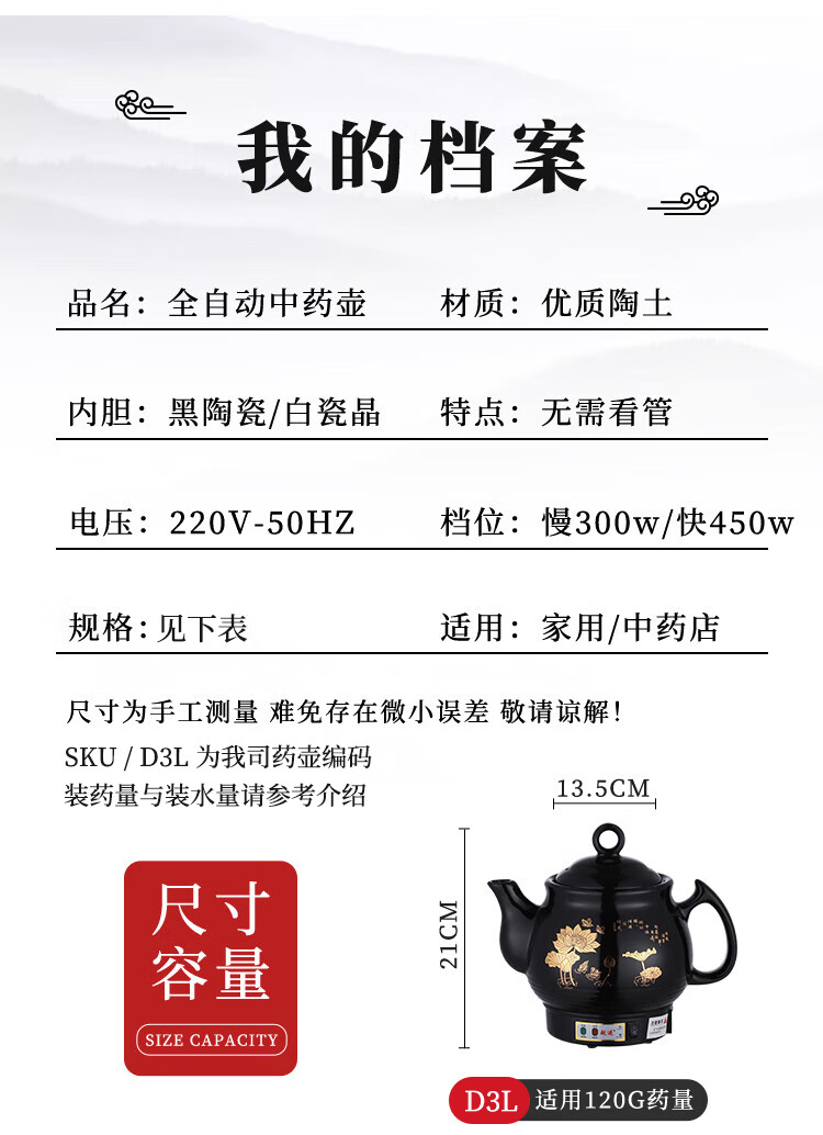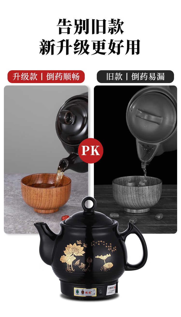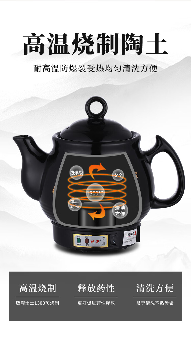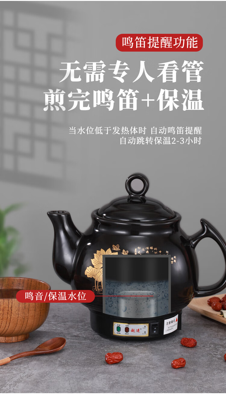 越进中药锅煎药壶煎药壶全自动熬药药煲中药电煎壶熬中药砂锅药罐家用养生壶药罐煎药壶熬药中药煎锅 D6黑色长嘴荷花/黑瓷不粘/一键智能 3.8L