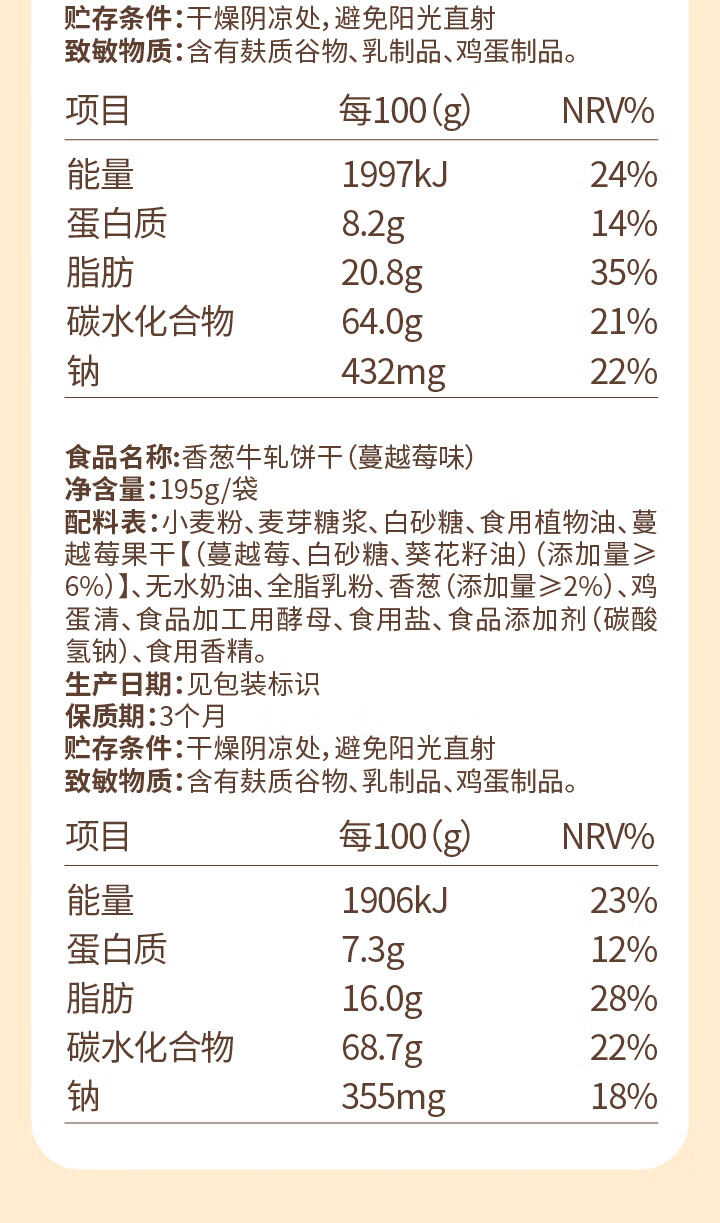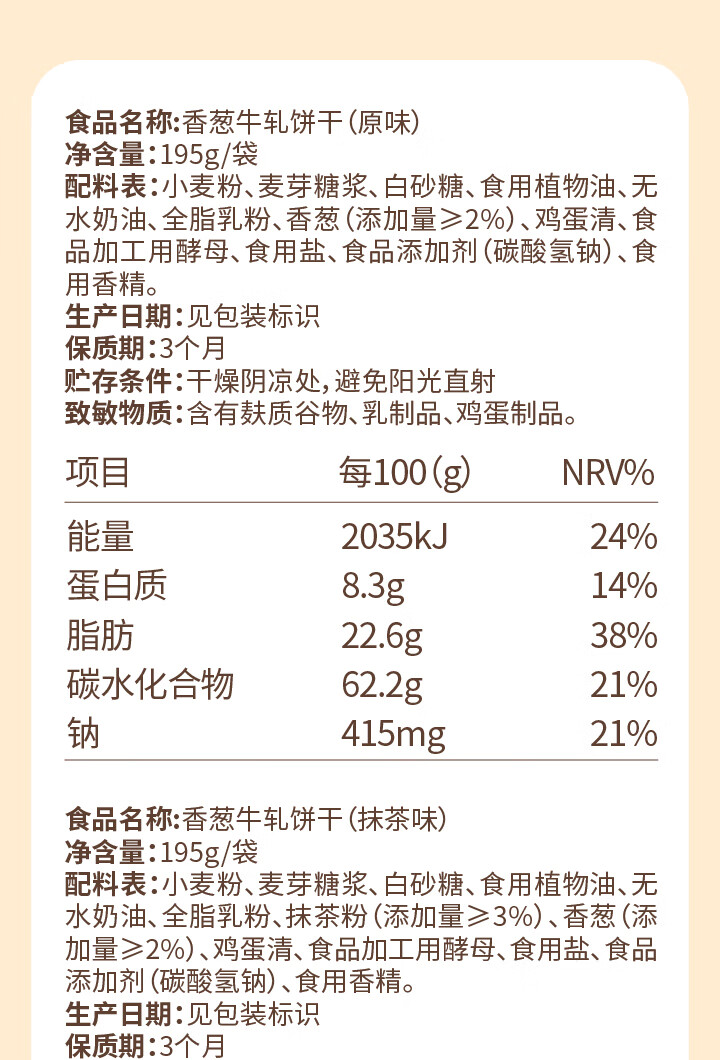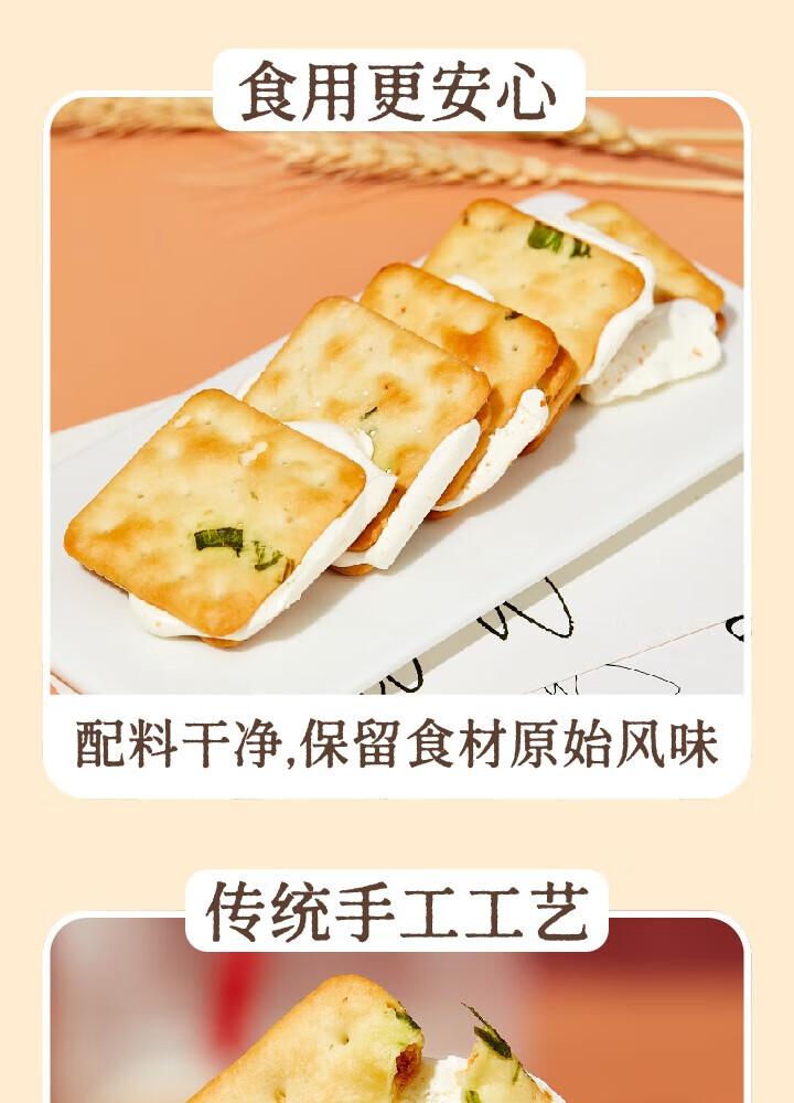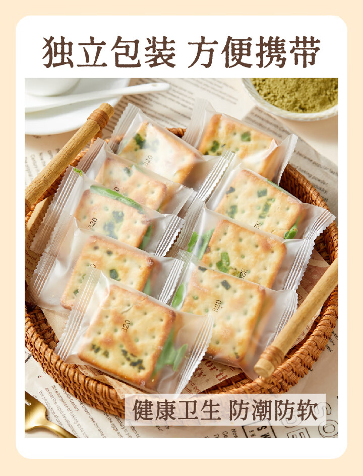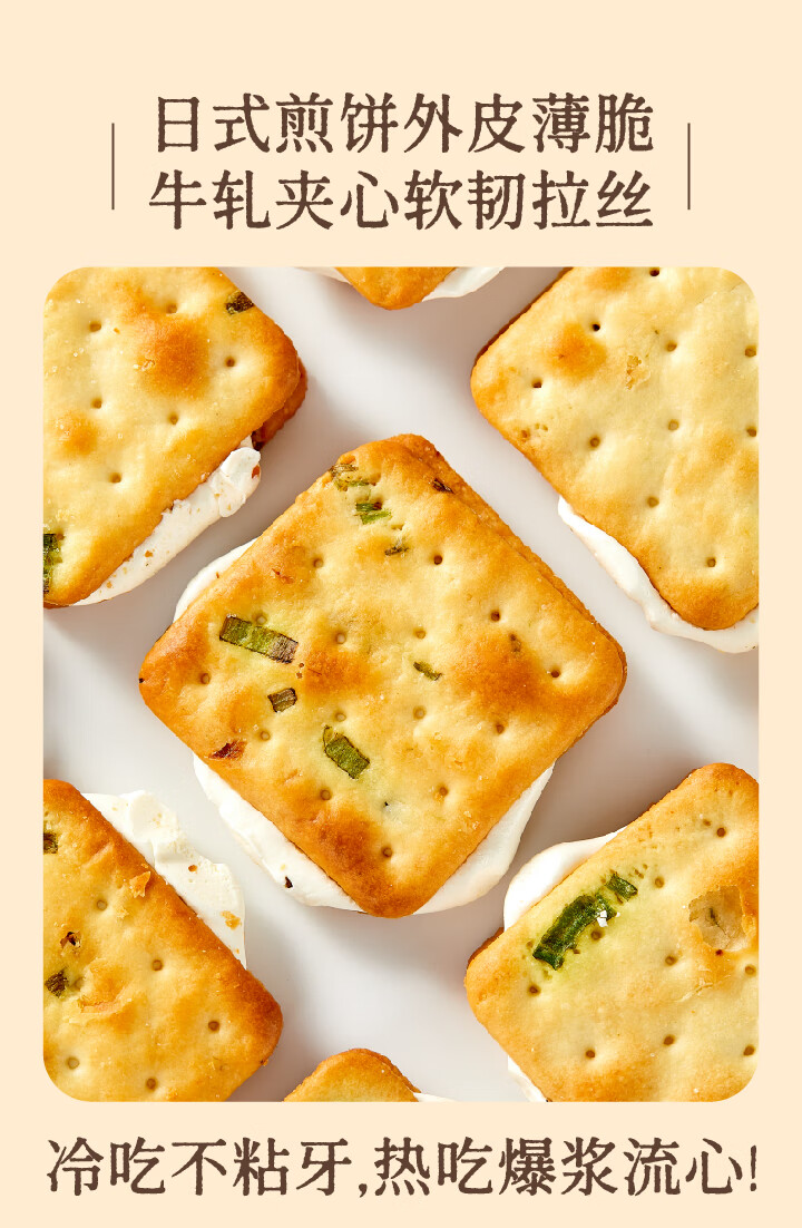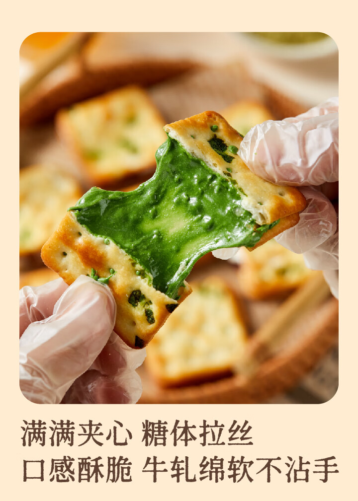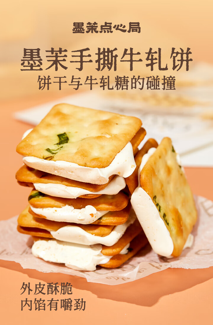 墨茉点心局香葱牛轧糖夹心饼干 牛轧饼抹茶蔓越莓手工网红独立小零食小饼干 香葱牛轧饼(抹茶味) 195g*1袋 2袋