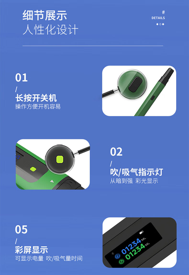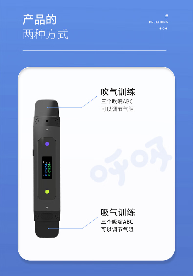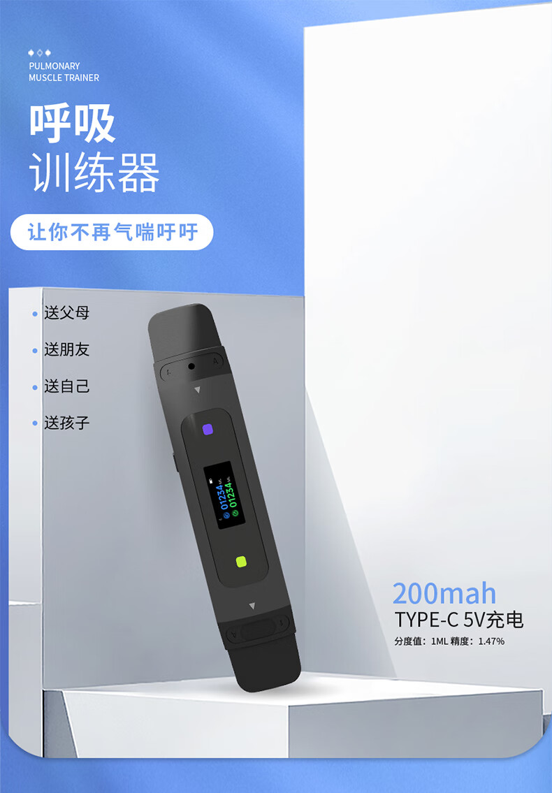 云天开便携式智能电子呼吸训练器成人肺活量检测仪慢阻肺腹式肺功能测试 【V6数字化款】