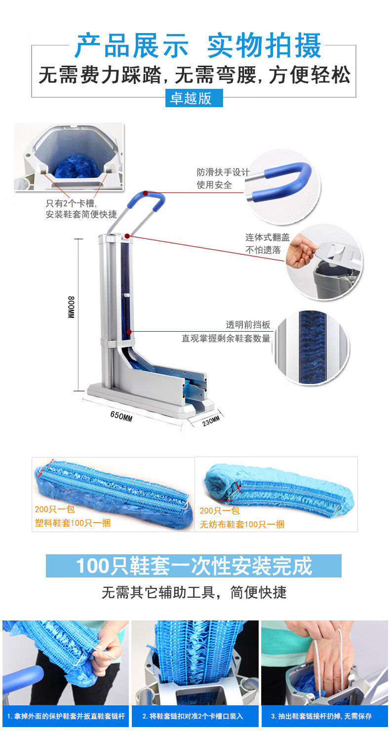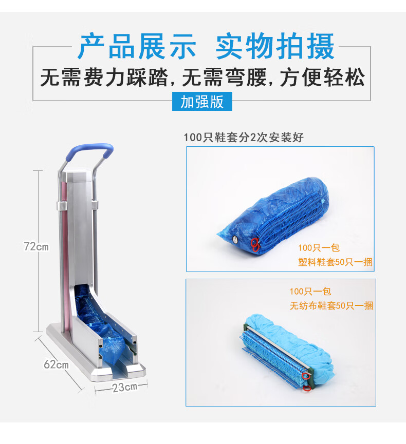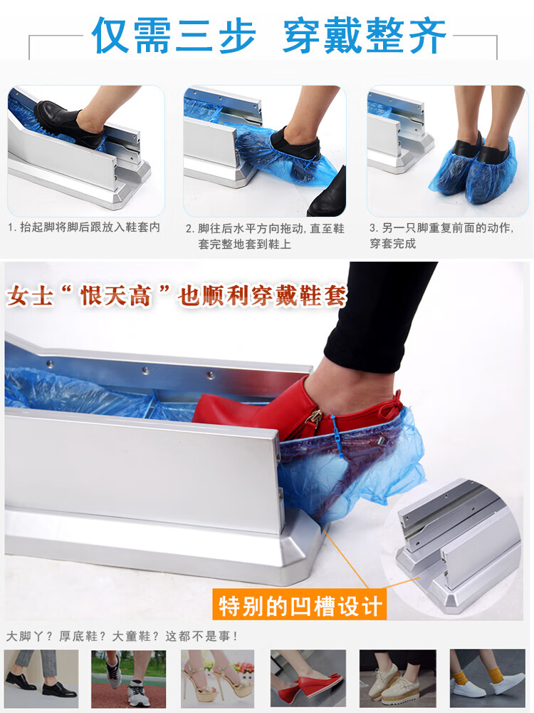 天诺雅鞋套机自动智能鞋膜机拖拉式家用新款一次性踩脚脚套器商用工厂 带扶手加强版 银色+现货速发