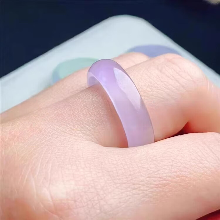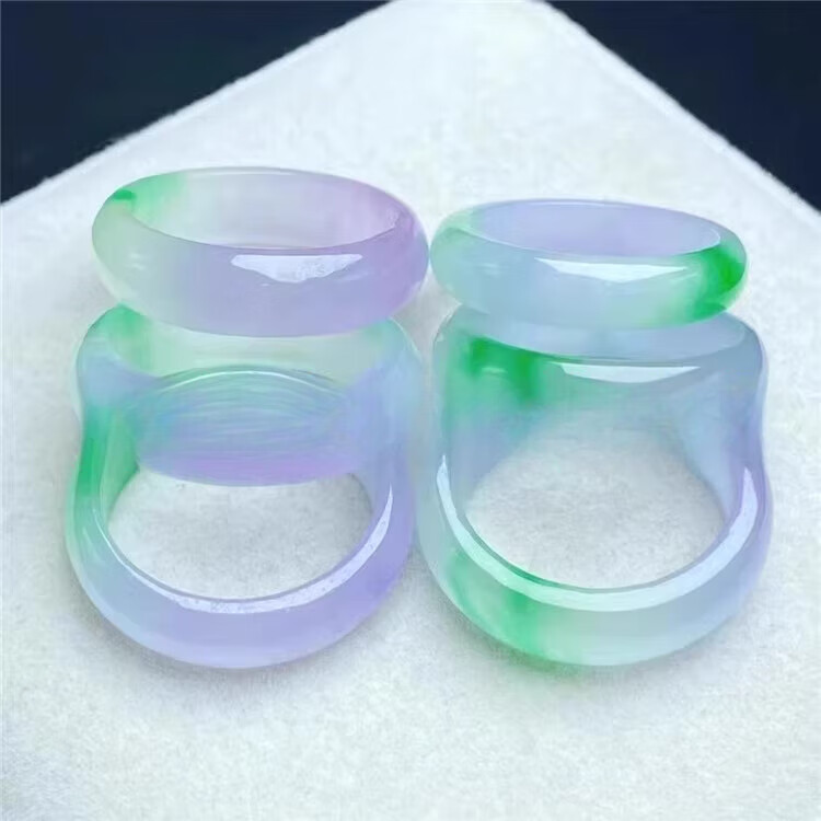 DL 1998胖东来同款紫翡翠戒指紫罗兰翡翠色戒指女款危地马拉春带彩阳绿冰 紫飘绿内径14-16mm
