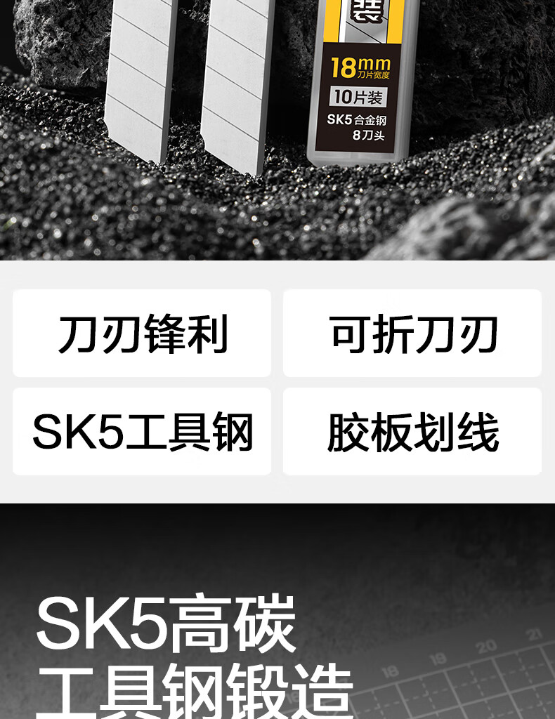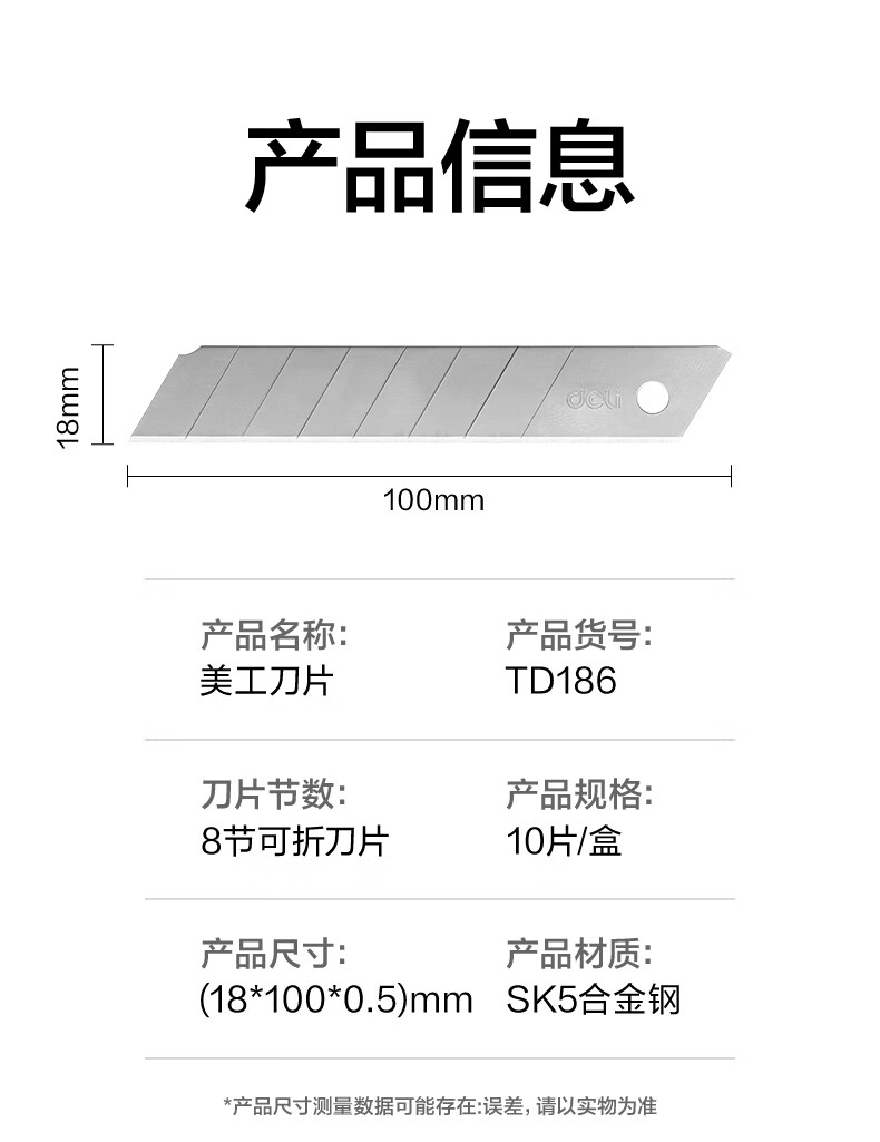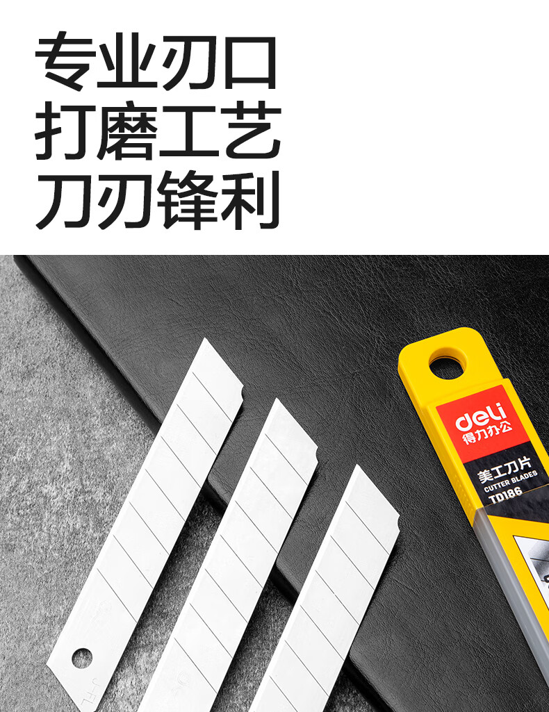 得力(deli)18mm美工刀片墙纸刀壁纸刀裁纸8刀头 安全快递开箱刀替换刀片10片/盒 TD186