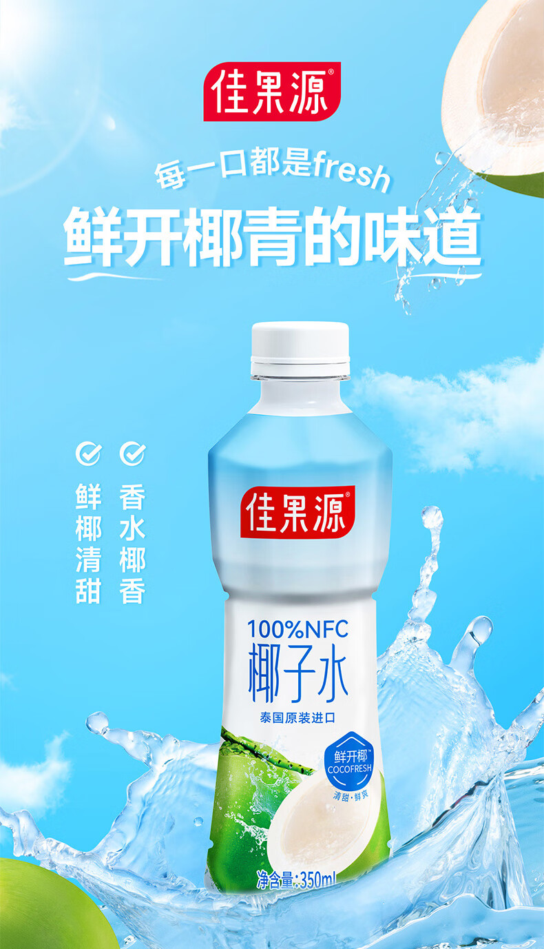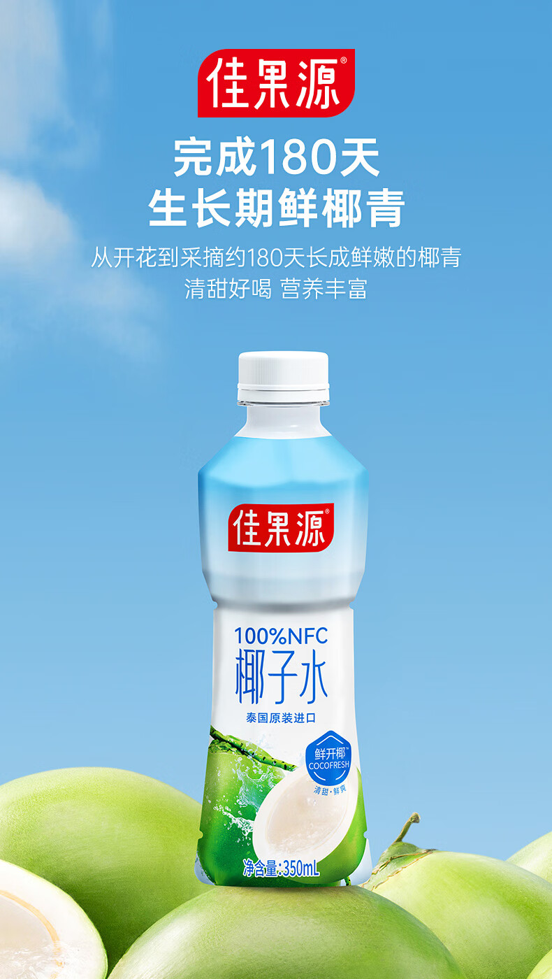 佳果源100%NFC椰子水350ml*6瓶【临期清仓】