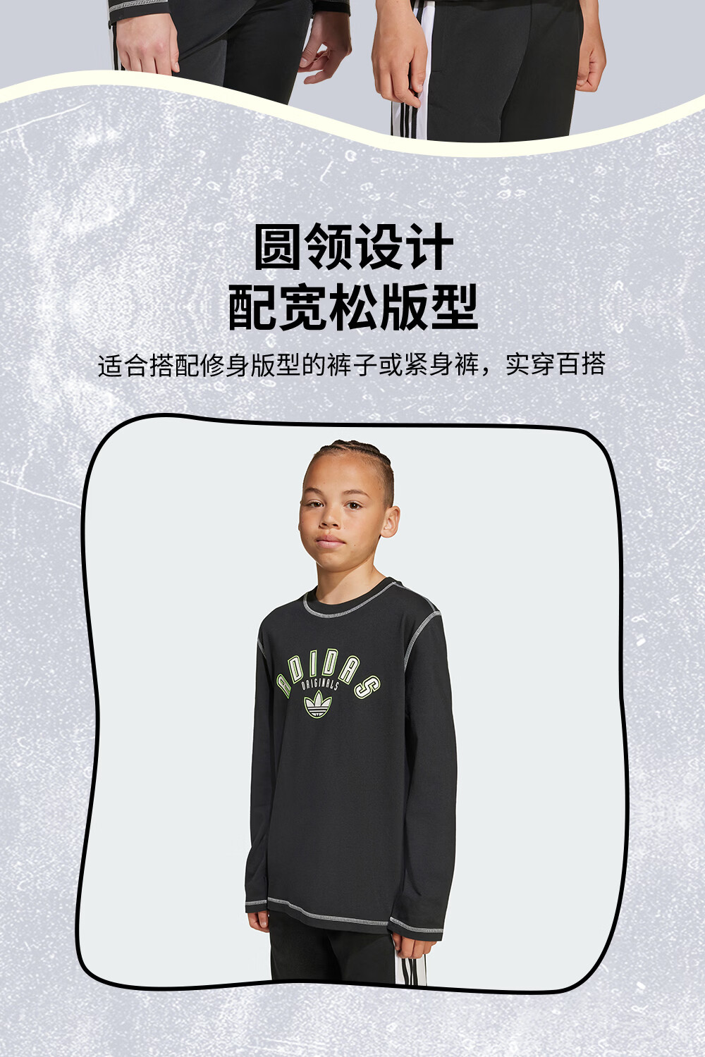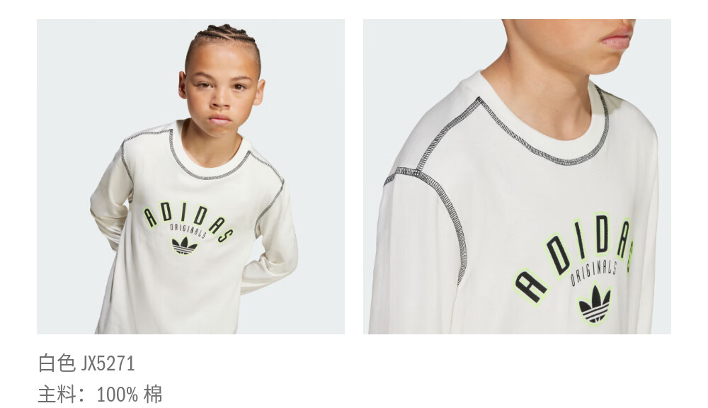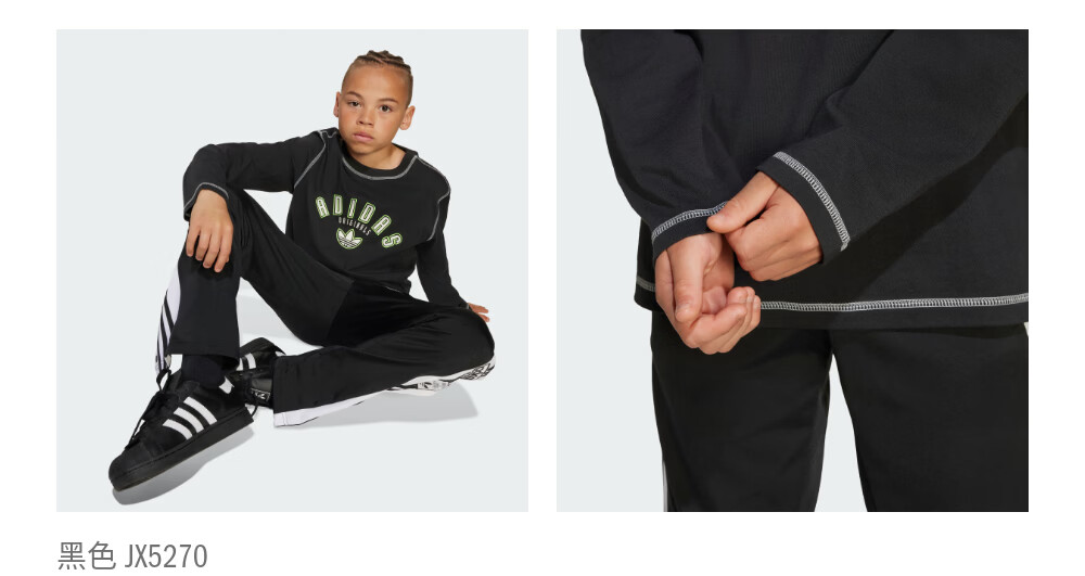 adidas大童宽松舒适运动长袖T恤阿迪达斯官方三叶草 黑色 152
