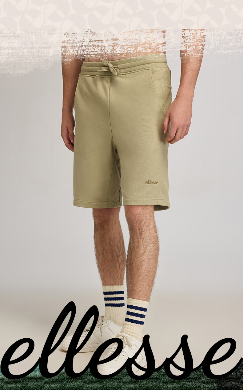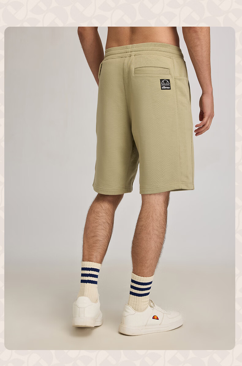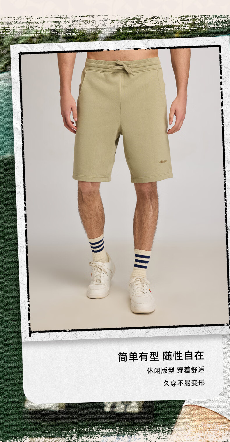ellesse小贝壳官方旗舰店运动短裤男2024春夏新款抽绳直筒休闲裤 卡其绿色 S