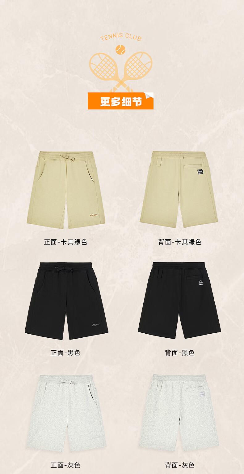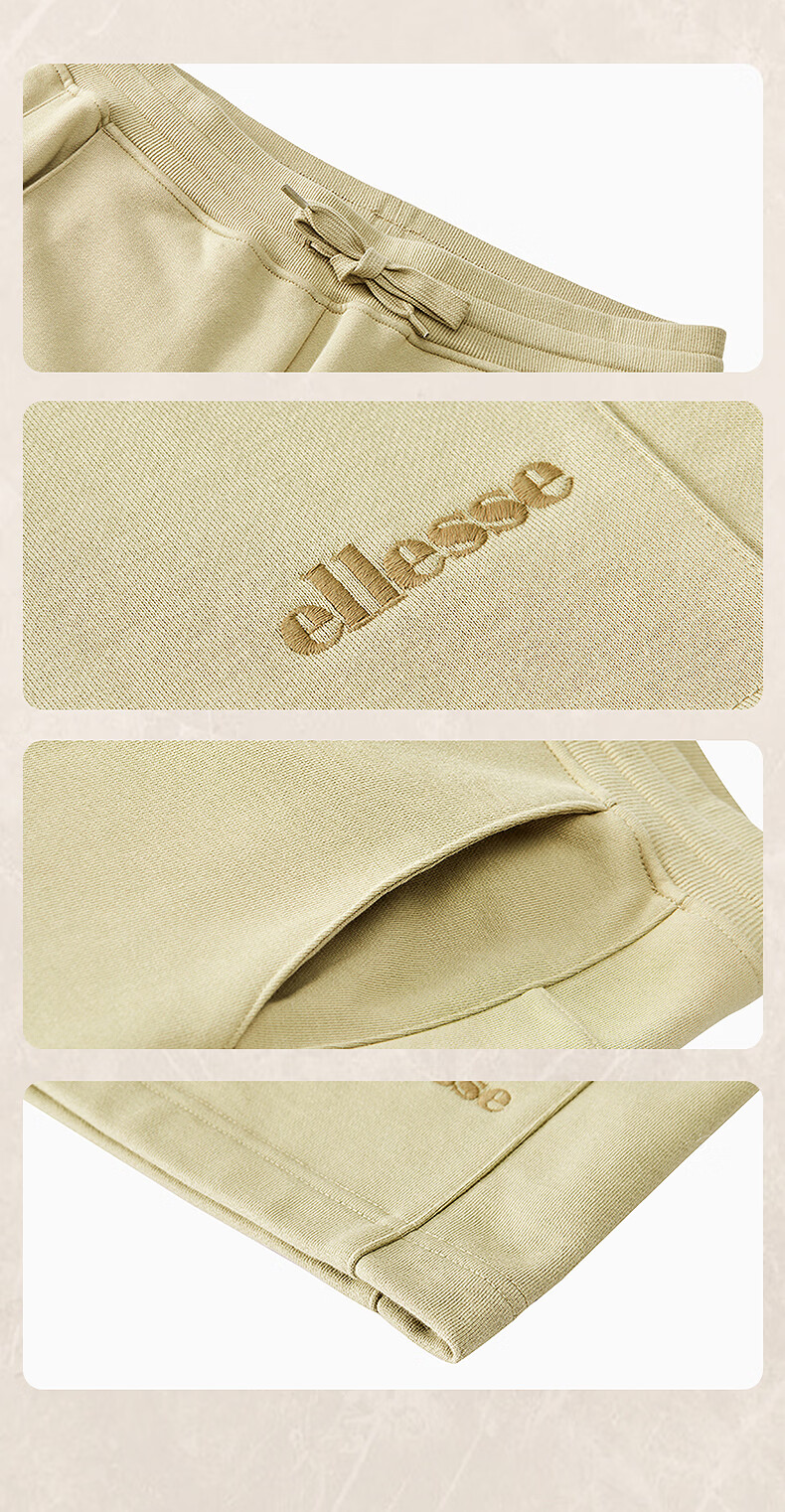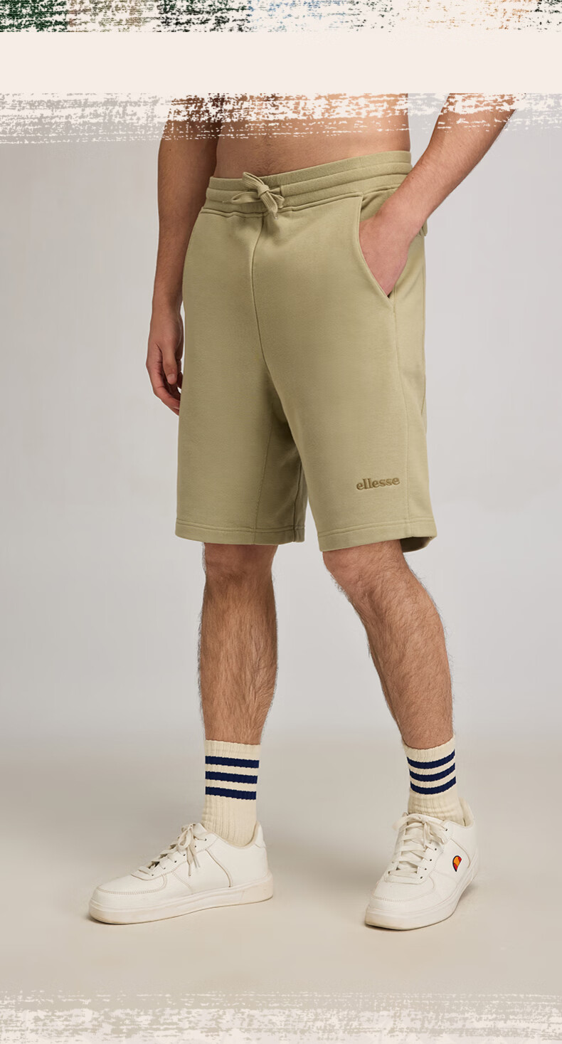 ellesse小贝壳官方旗舰店运动短裤男2024春夏新款抽绳直筒休闲裤 卡其绿色 S