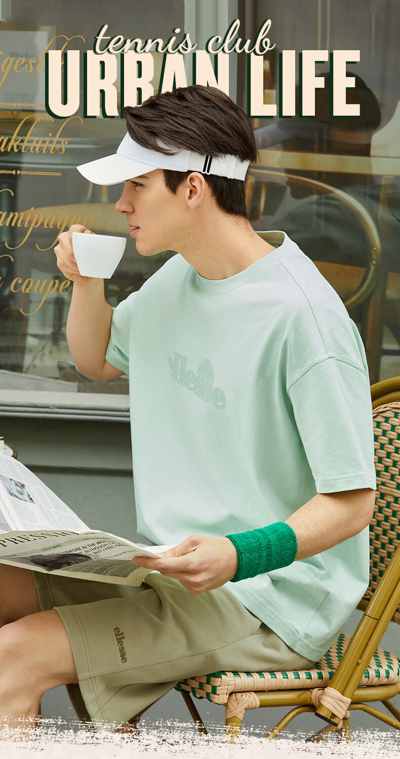 ellesse小贝壳官方T恤男荷曼波刺绣情侣短袖上衣女透气舒适百搭 葱绿色 S