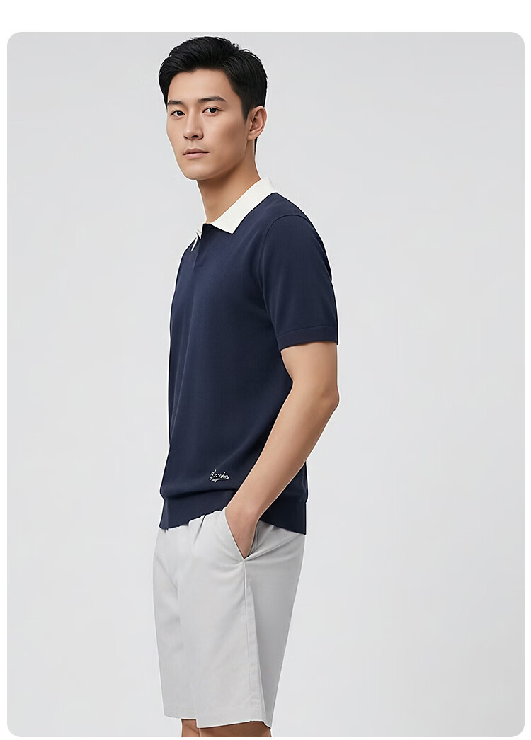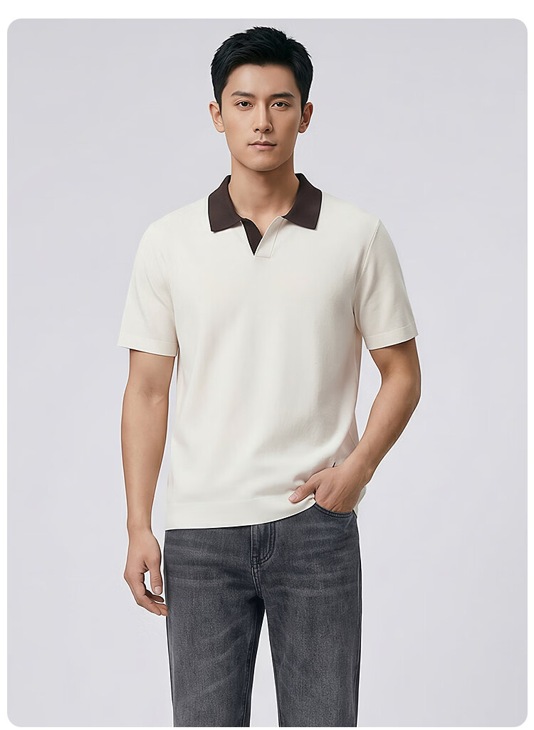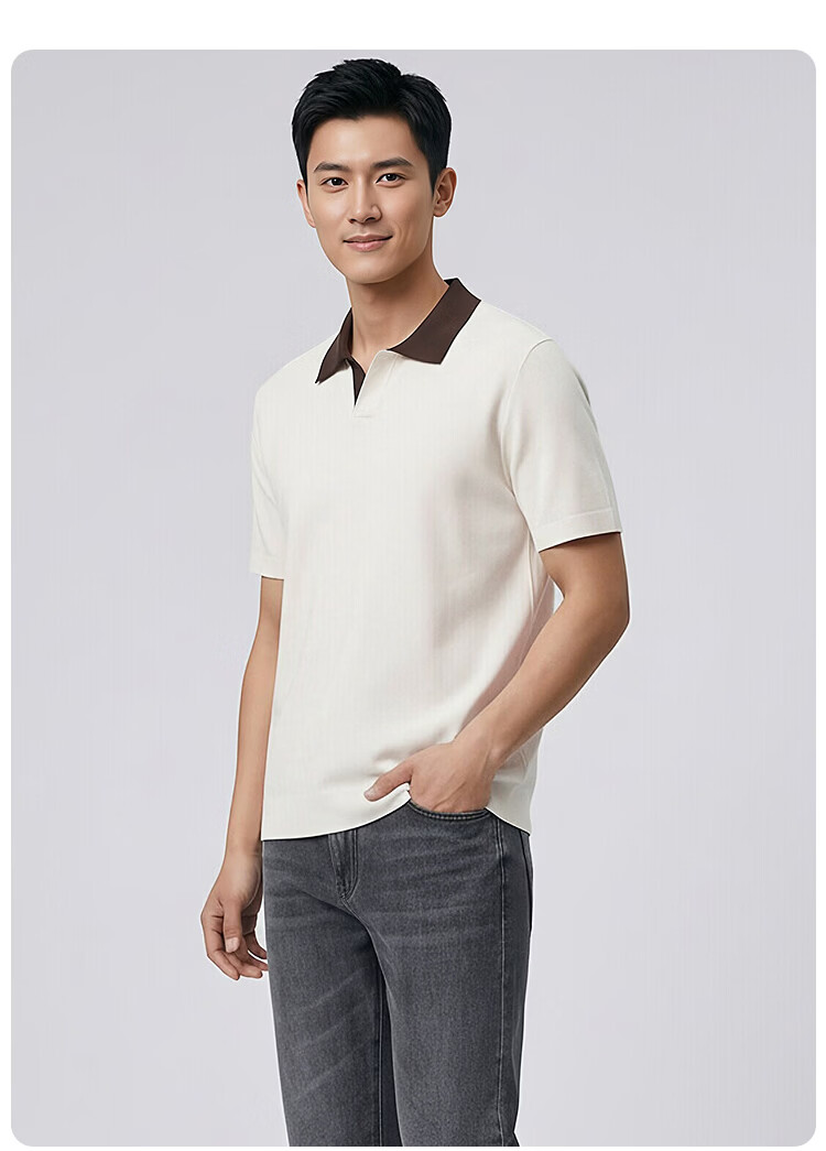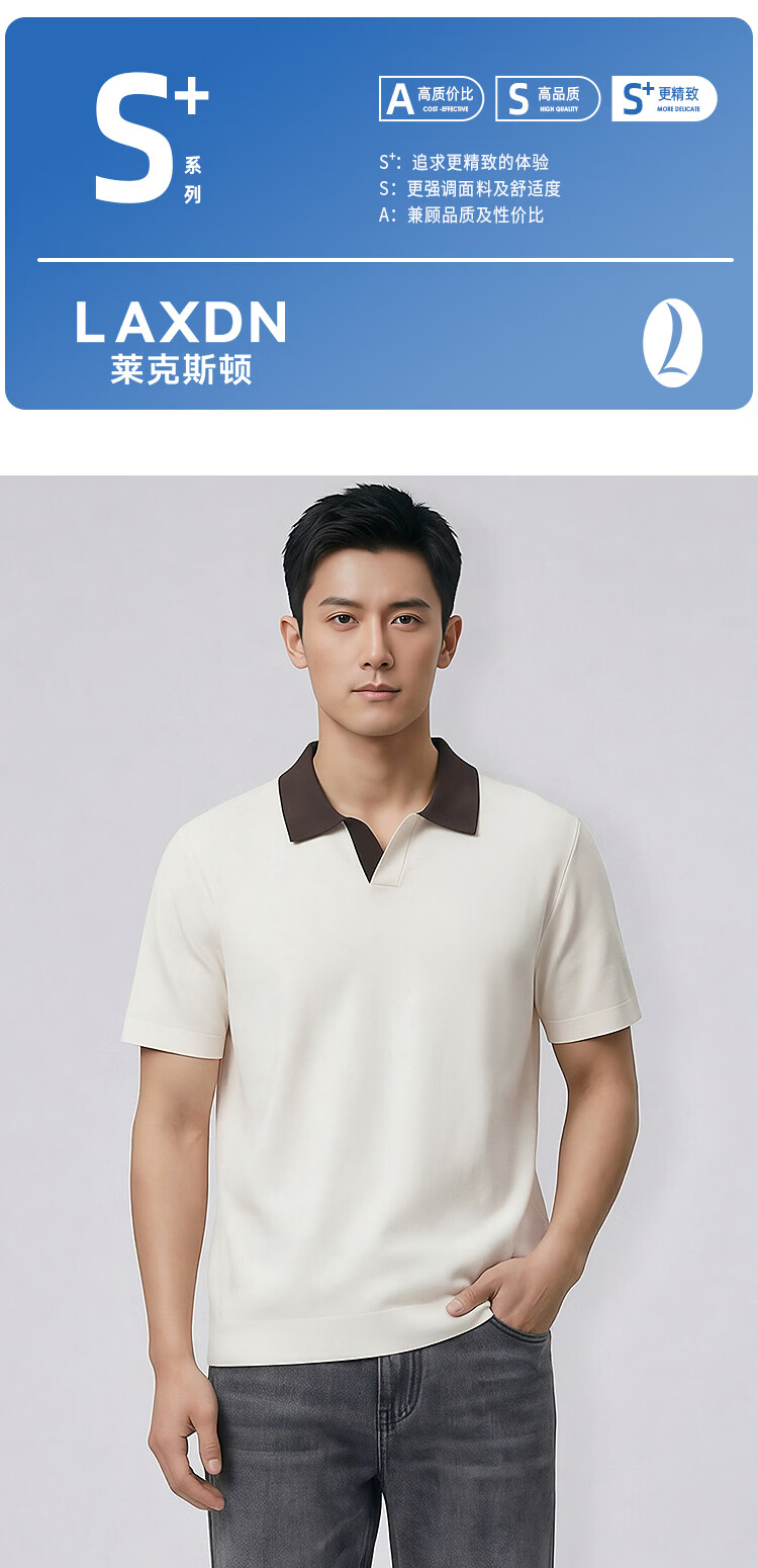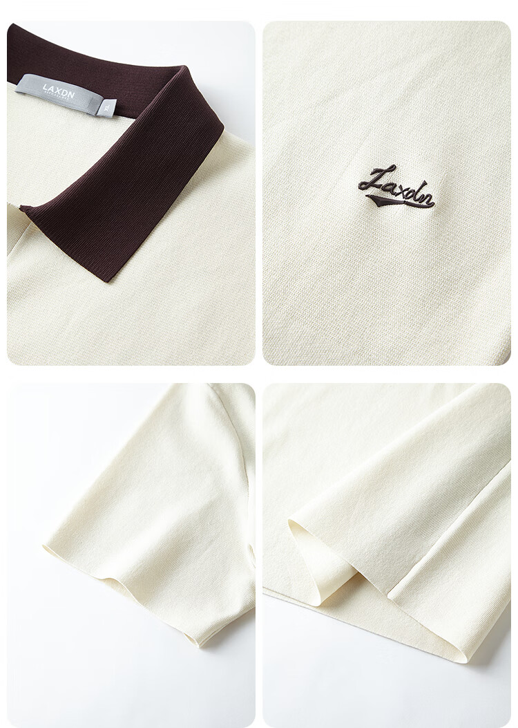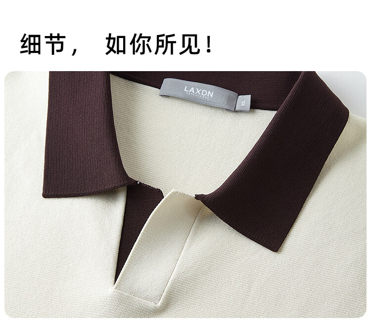 莱克斯顿(laxdn)短袖针织衫男夏季翻领套头撞色领柔软亲肤弹力商务休闲男装上衣男 米白 S