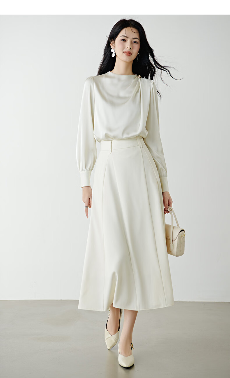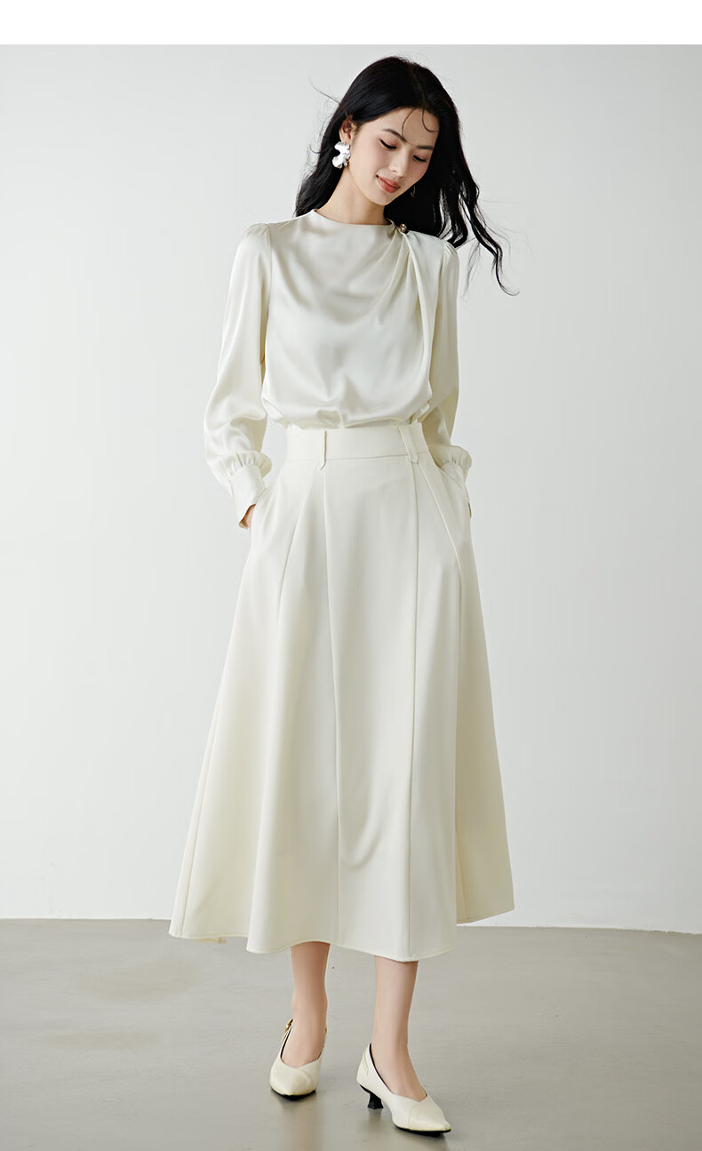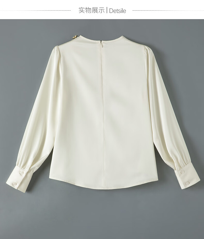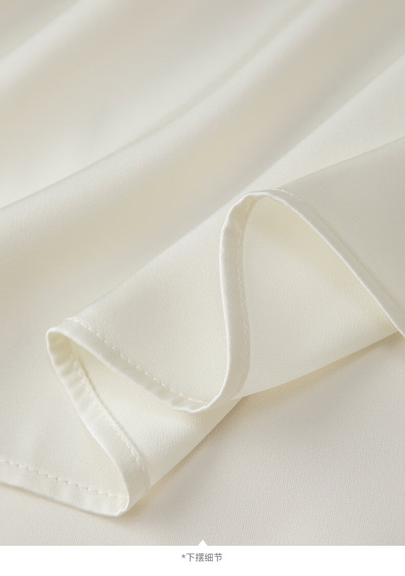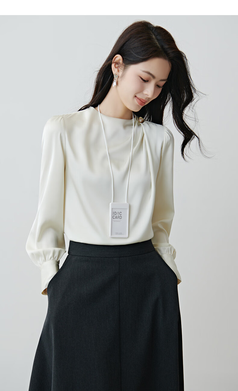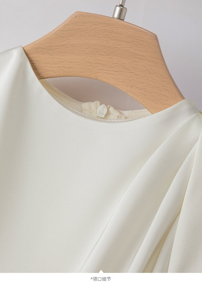 晚白设计感压褶缎面垂顺不易皱免烫衬衫2026春款时尚优雅法式通勤衬衣 米杏色 M