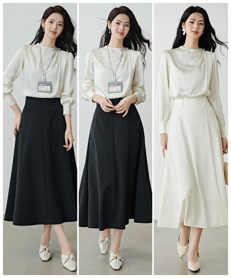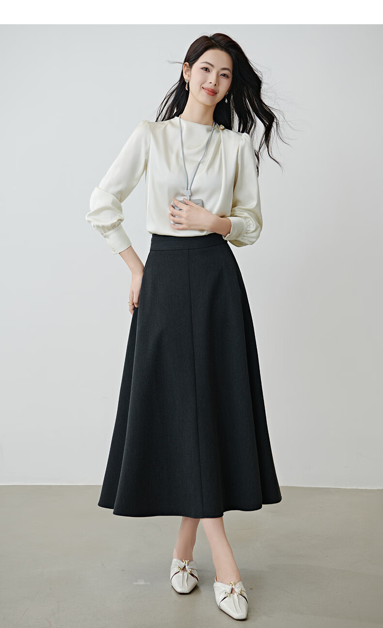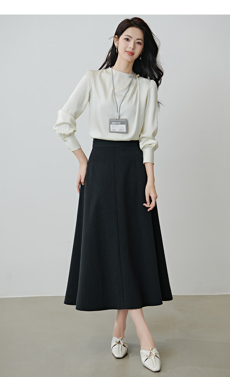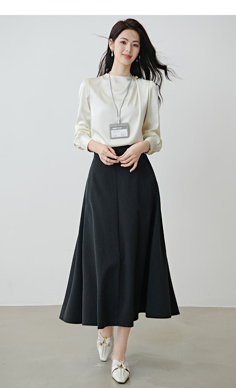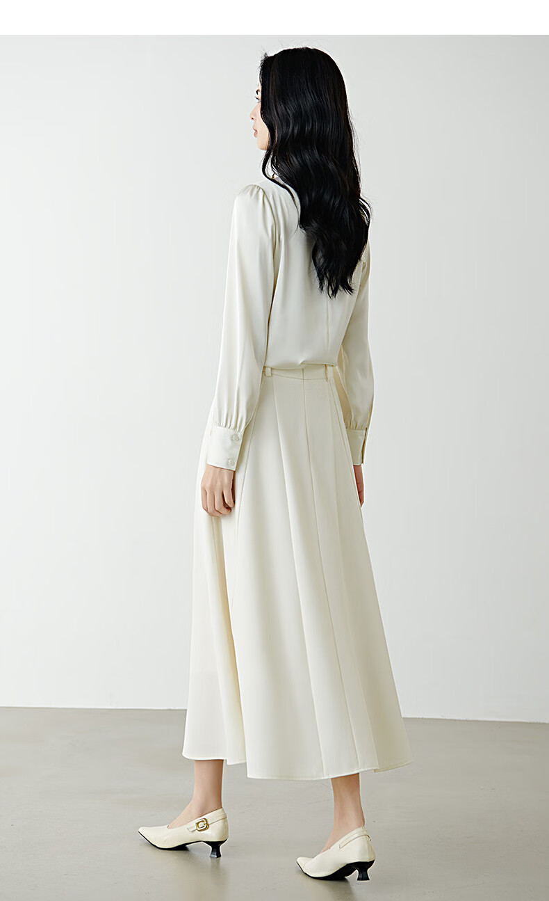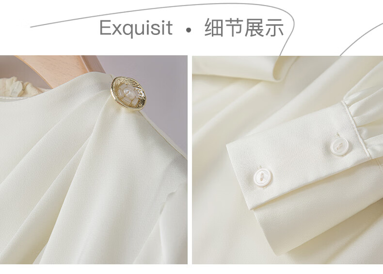 晚白设计感压褶缎面垂顺不易皱免烫衬衫2026春款时尚优雅法式通勤衬衣 米杏色 M