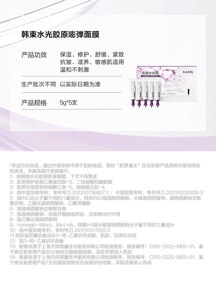 屈臣氏韩束水光胶原嘭弹面膜 25g (5g*5支装)