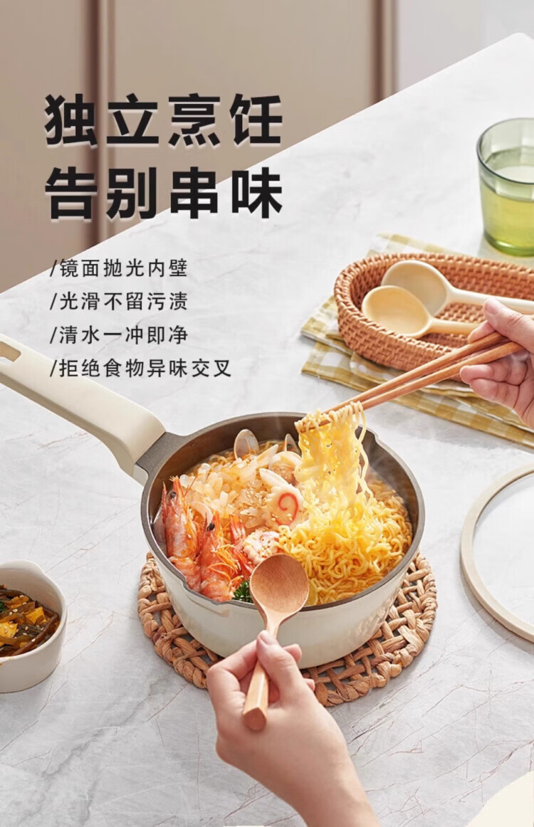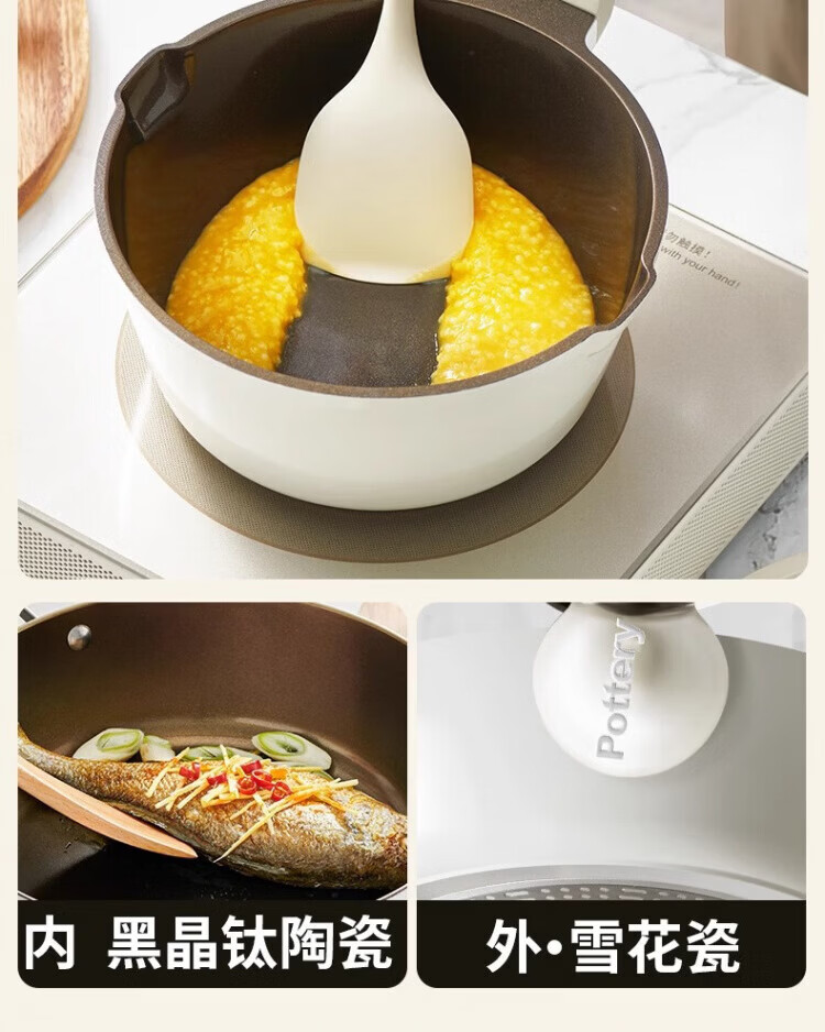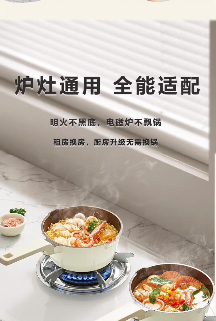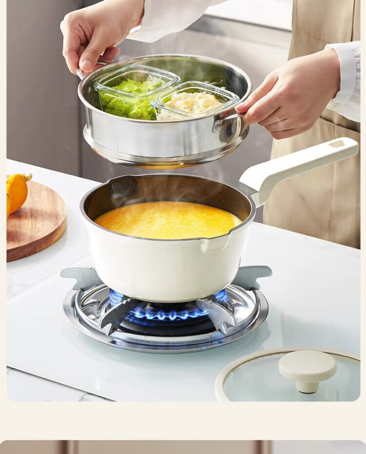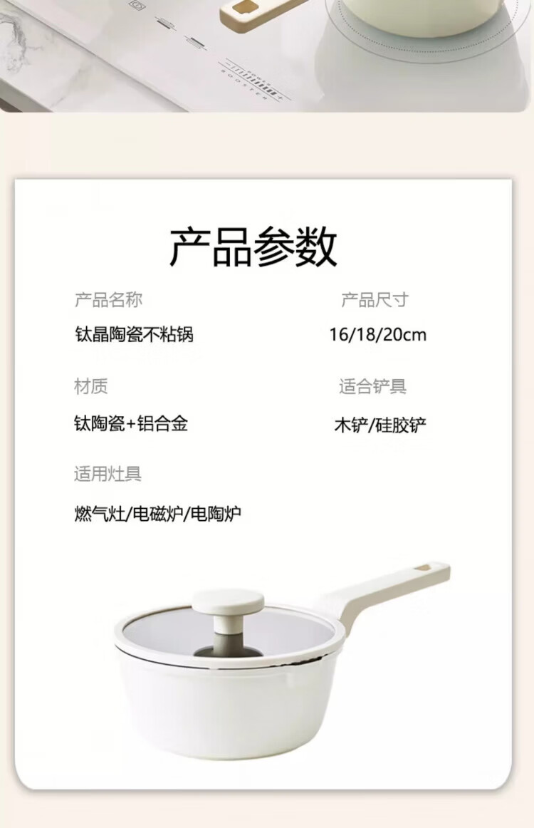 OCMOGO日本品牌有钛不粘小奶锅家用陶瓷辅食锅小锅燃气灶电磁炉通用 钛陶瓷奶锅【带盖】 20cm 2.6L 送蒸笼*1