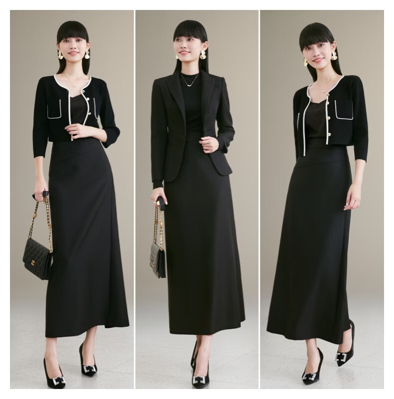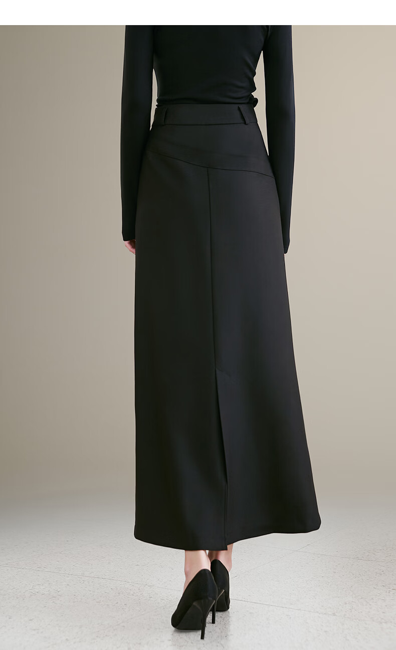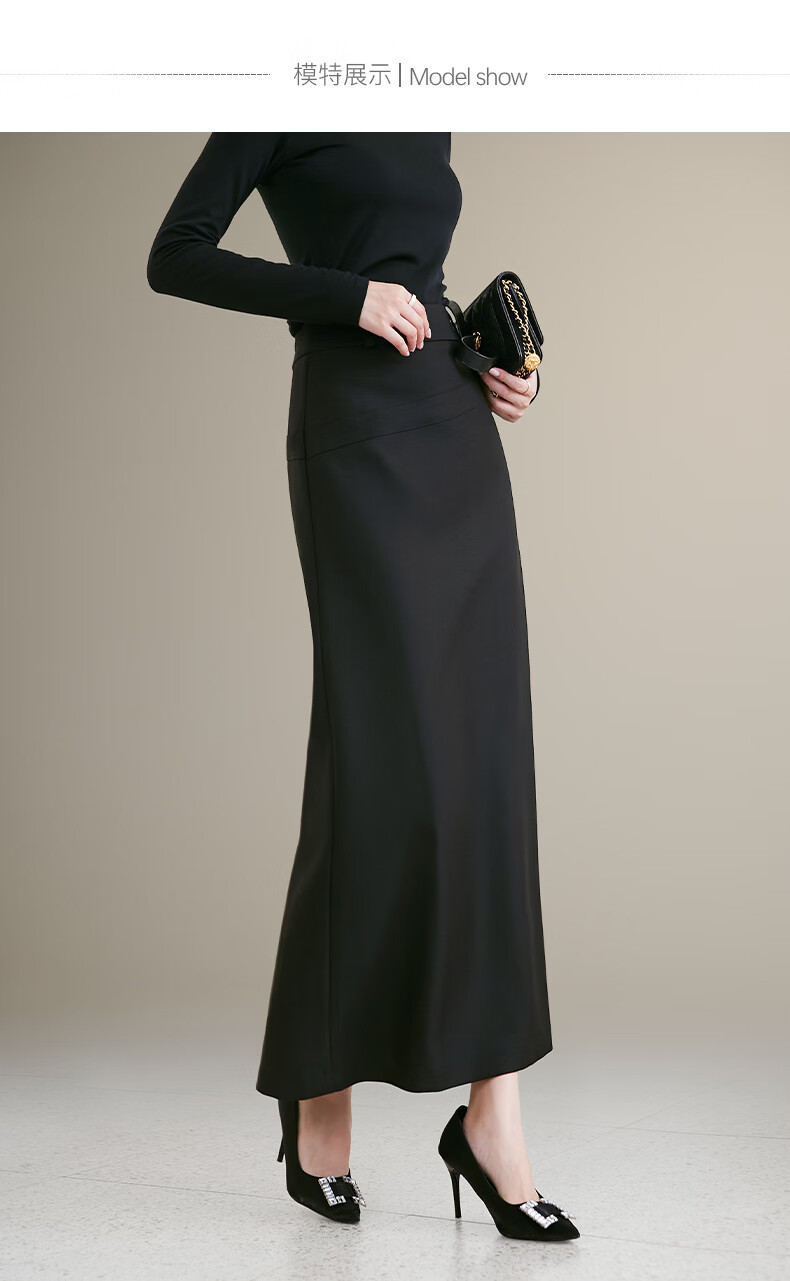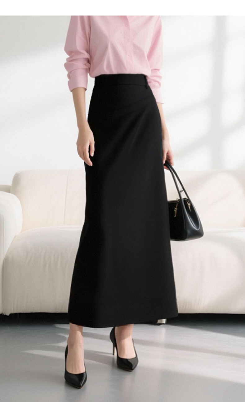 晚白【新品】2026年春款气质轻熟高腰半裙修身显瘦干练通勤直筒长裙 黑色 S