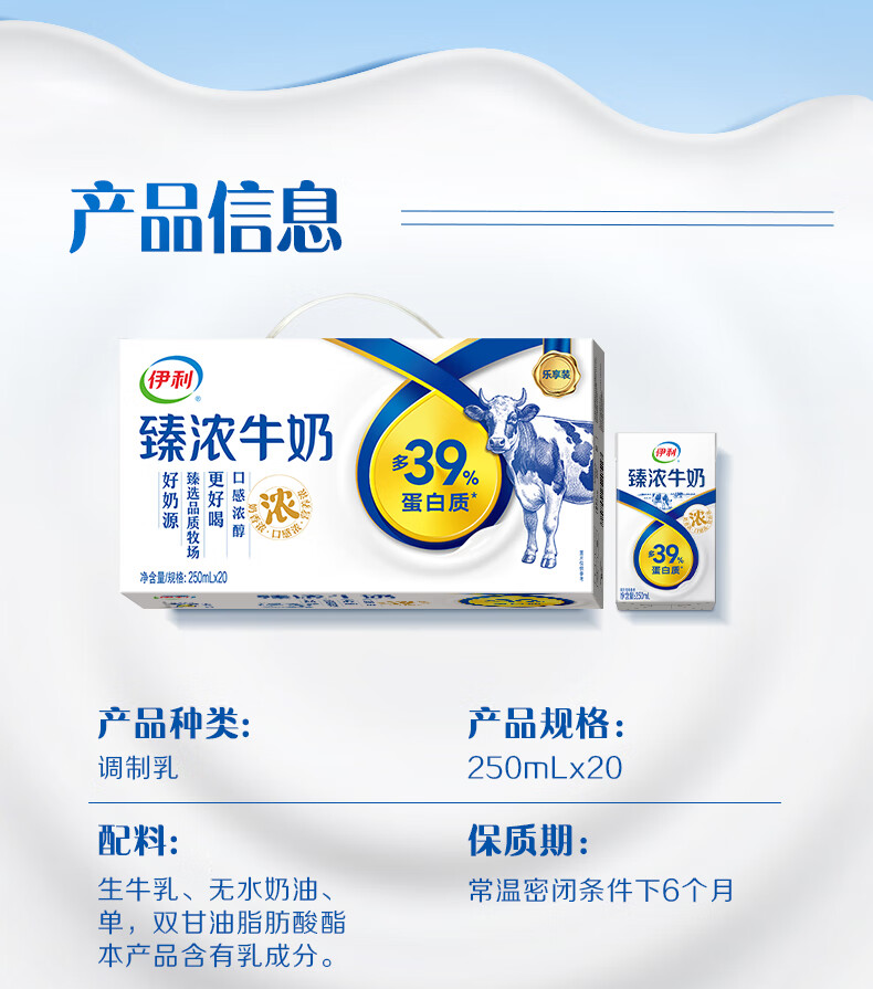 伊利臻浓砖牛奶250ml*20盒/箱 家庭囤货 浓醇更好喝 年货礼盒12月产 250ml*20盒/箱*1箱