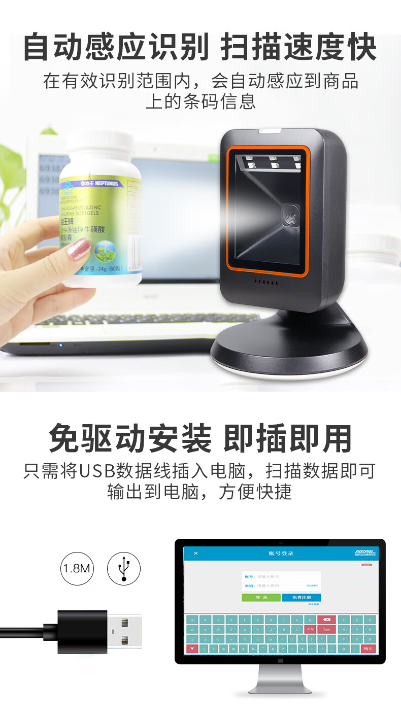优库 一二维码扫描平台 超市收款收银扫码器 电子医保药品追溯码支付扫码盒子扫码枪