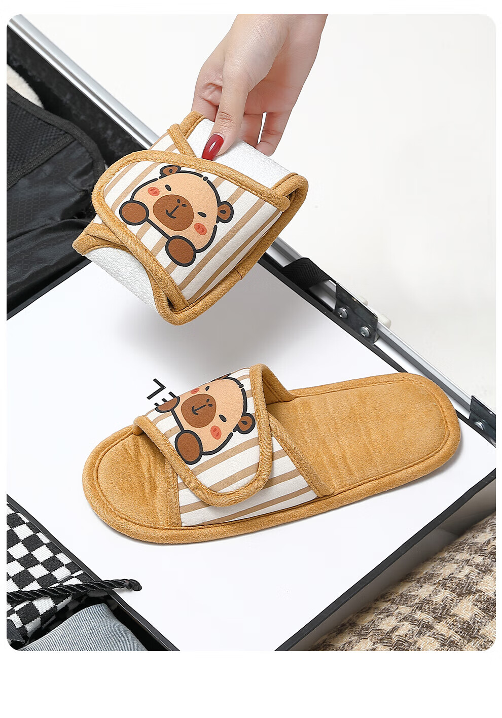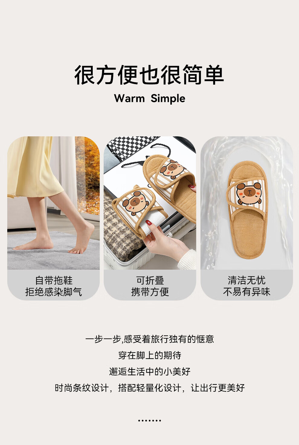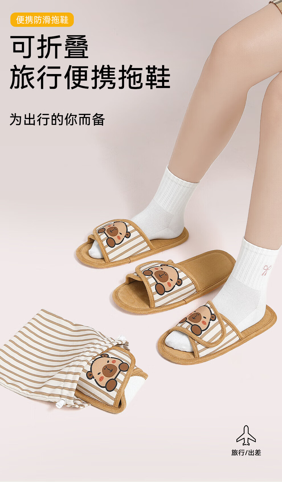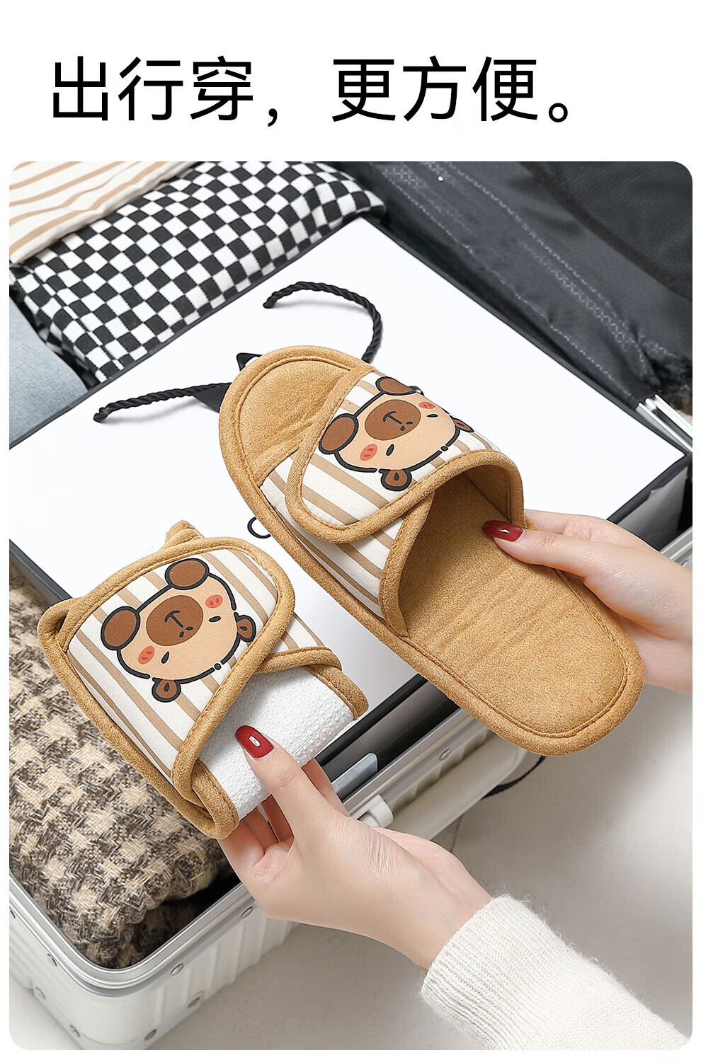 FZT可折叠棉拖鞋女士2025新款秋冬季卡通防滑居家旅行可携带棉拖男士 卡其色 36-37 正码