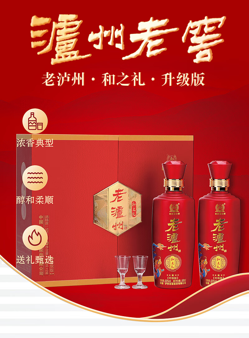 泸州老窖和之礼 白酒礼盒整箱 52度浓香型500ml*2*3盒 喜宴宴请商务送礼