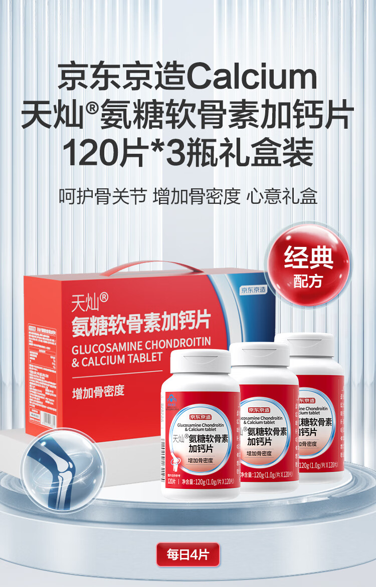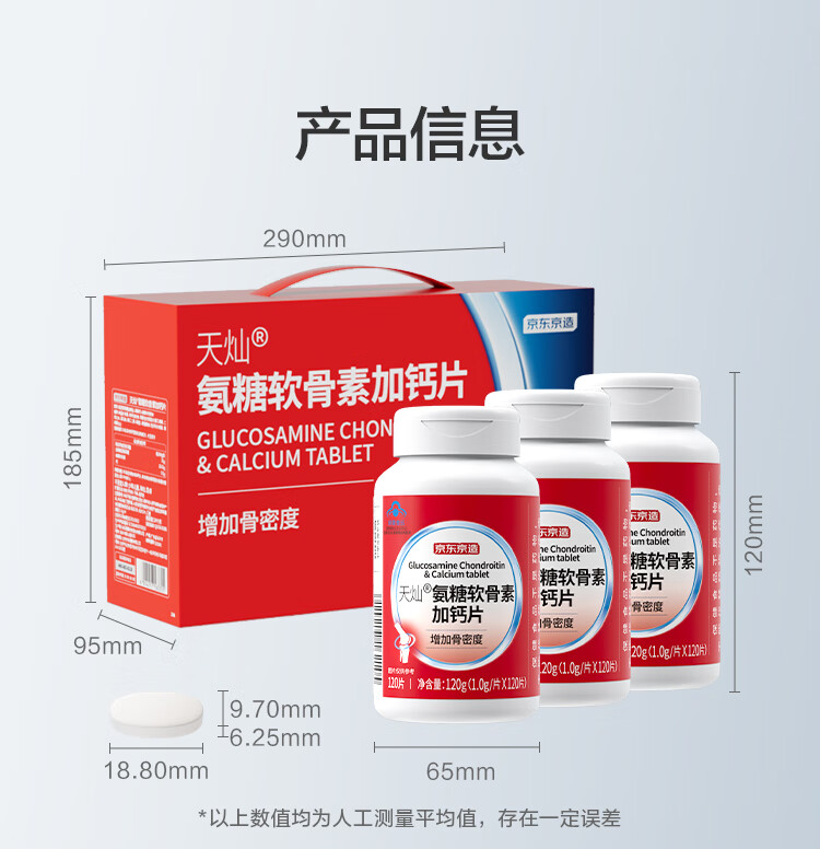 京东京造氨糖软骨素加钙片360片 氨基葡萄糖硫酸软骨素送父母中老