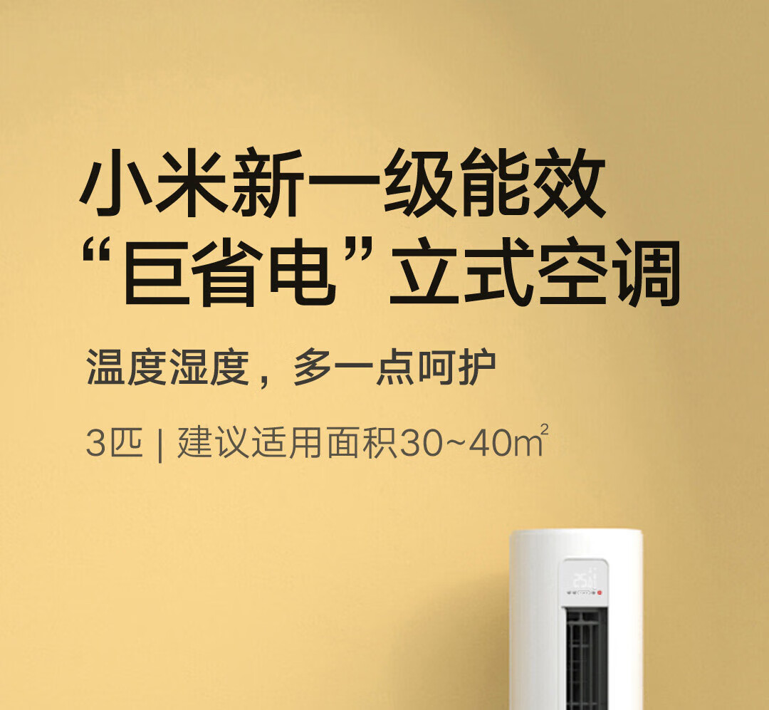 小米(MI)米家 3匹 新一级能效 巨省电 变频冷暖 圆柱空调柜机KFR-72LW/N1A1 巨省电 3匹 一级能效