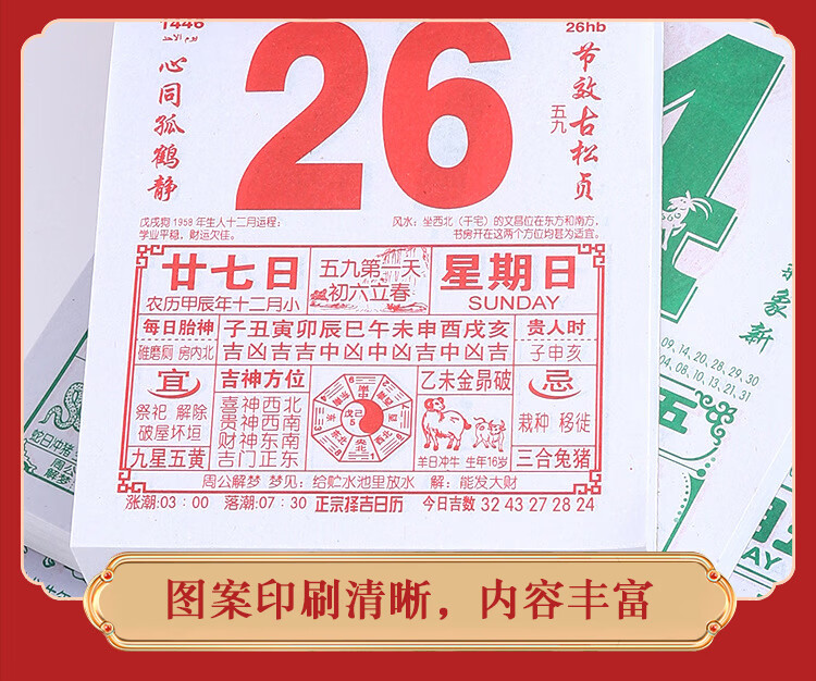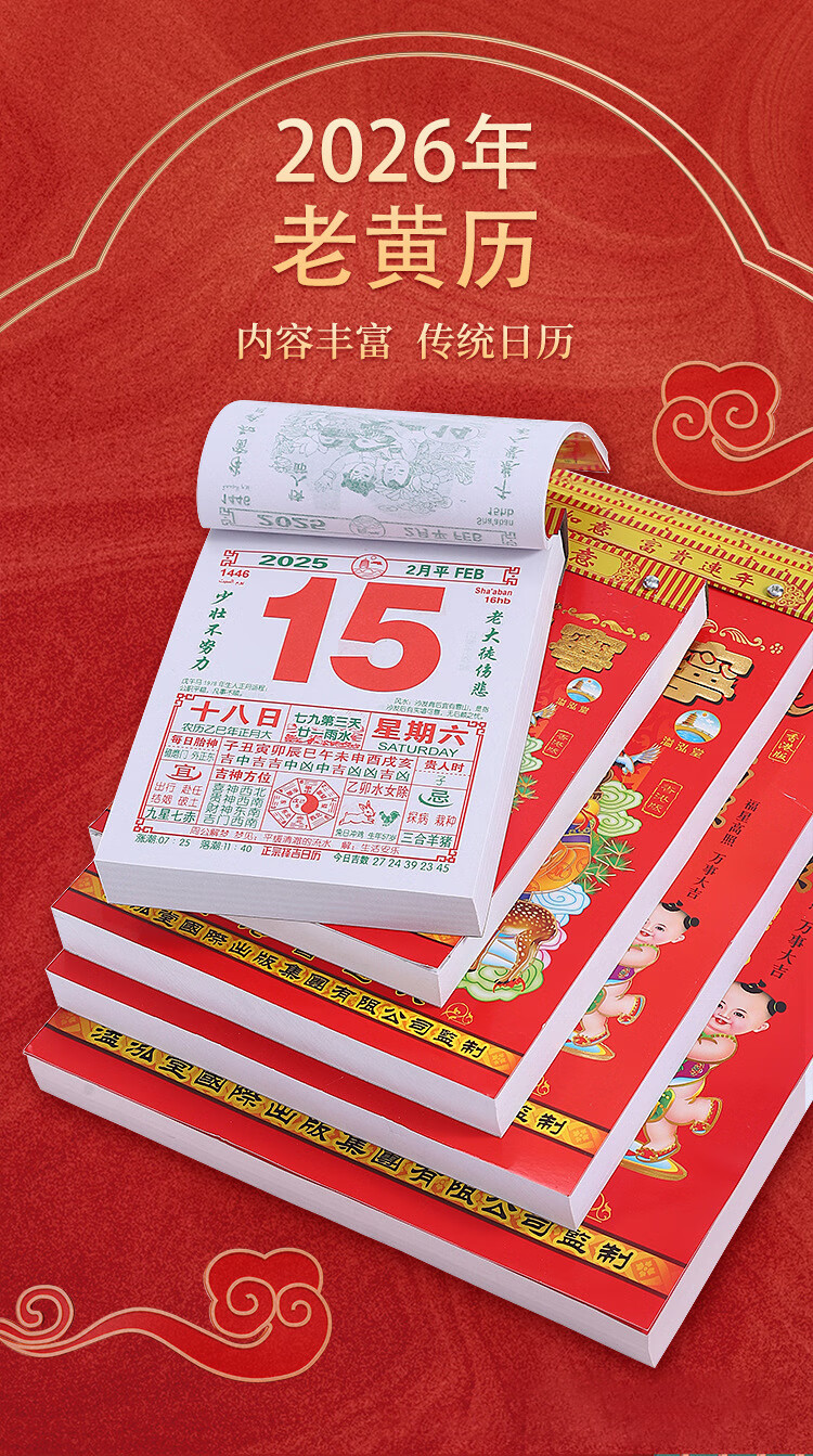 少年伴日历历年历本挂式2026马年新年礼物老黄历挂历手撕家用挂墙农传统挂厉 16k台历一本随机发CHM-207