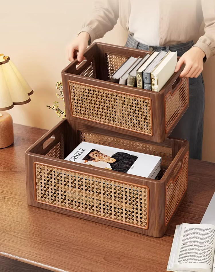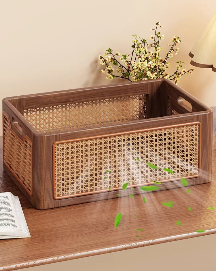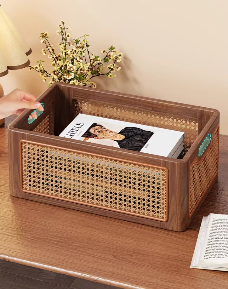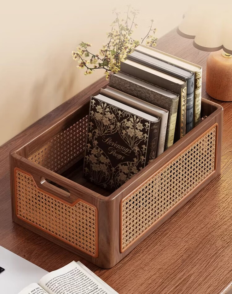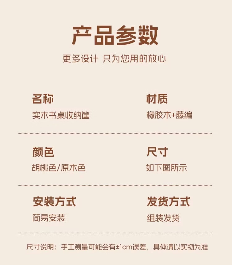 尔思家实木书包置物架初中高中生桌下可移动书本包包收纳箱杂物置物筐 胡桃色桌面款大号【进口实木】