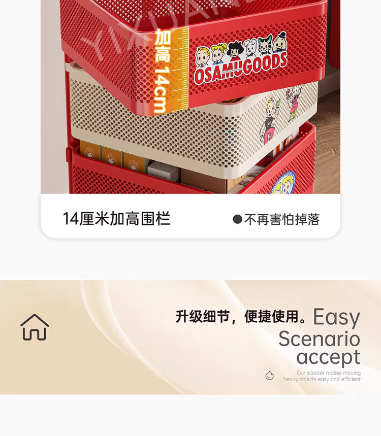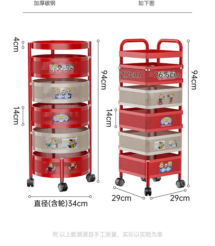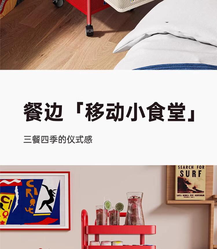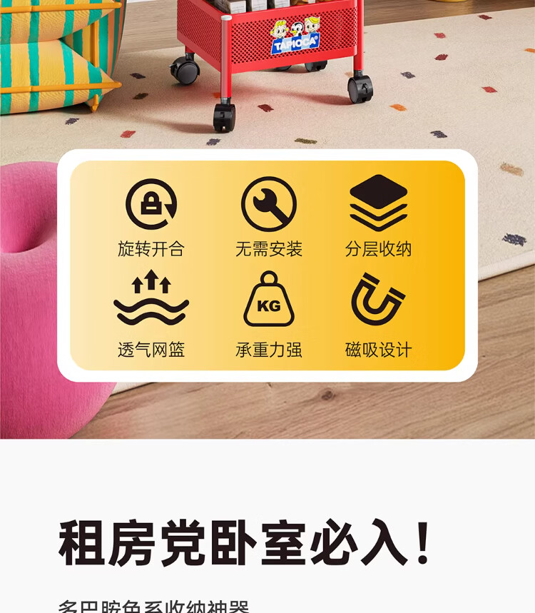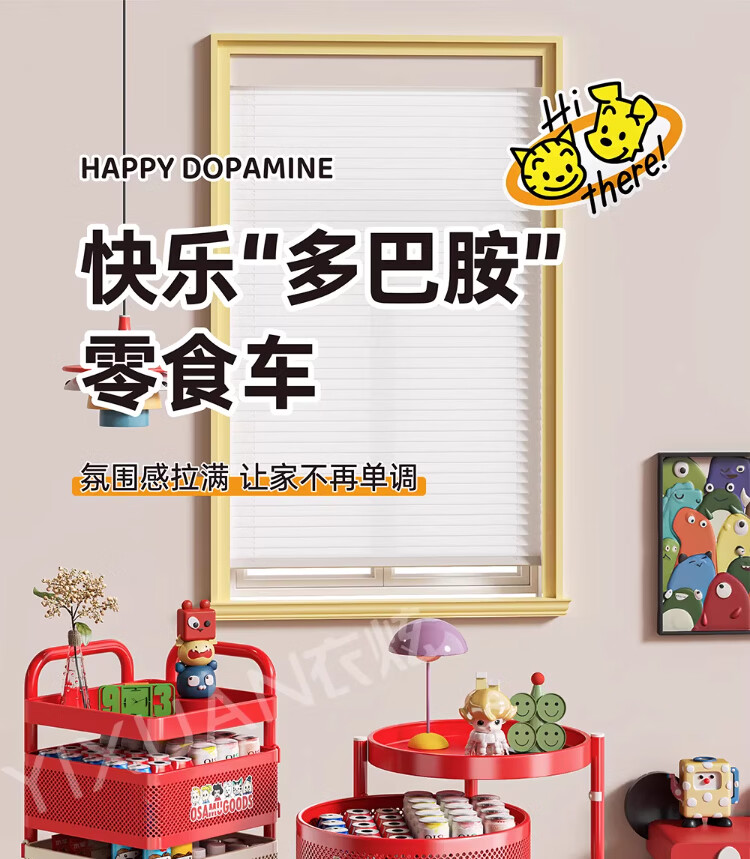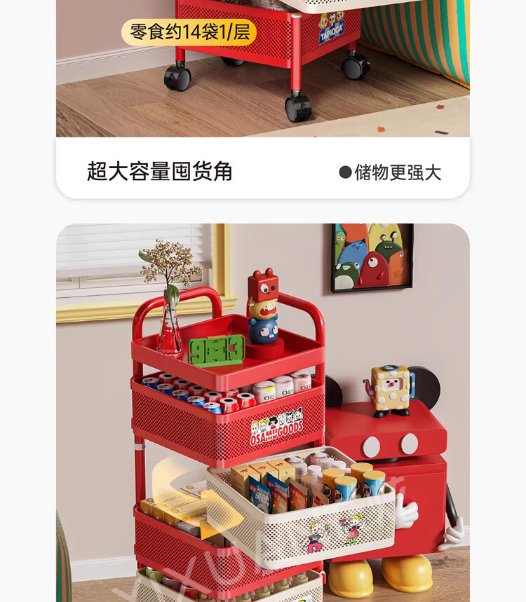 衣炫多巴胺小推车零食置物架可移动旋转落地家用客厅厨房多层收纳架子 【方形-巨厚碳钢】三层带磁吸 升级免安装 到手即用