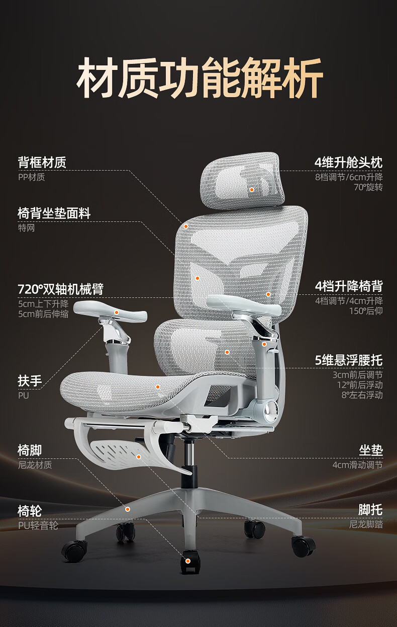 STARSPACE电脑椅人体工学椅护腰久坐学习办公椅子人工力学椅电竞椅靠背椅子
