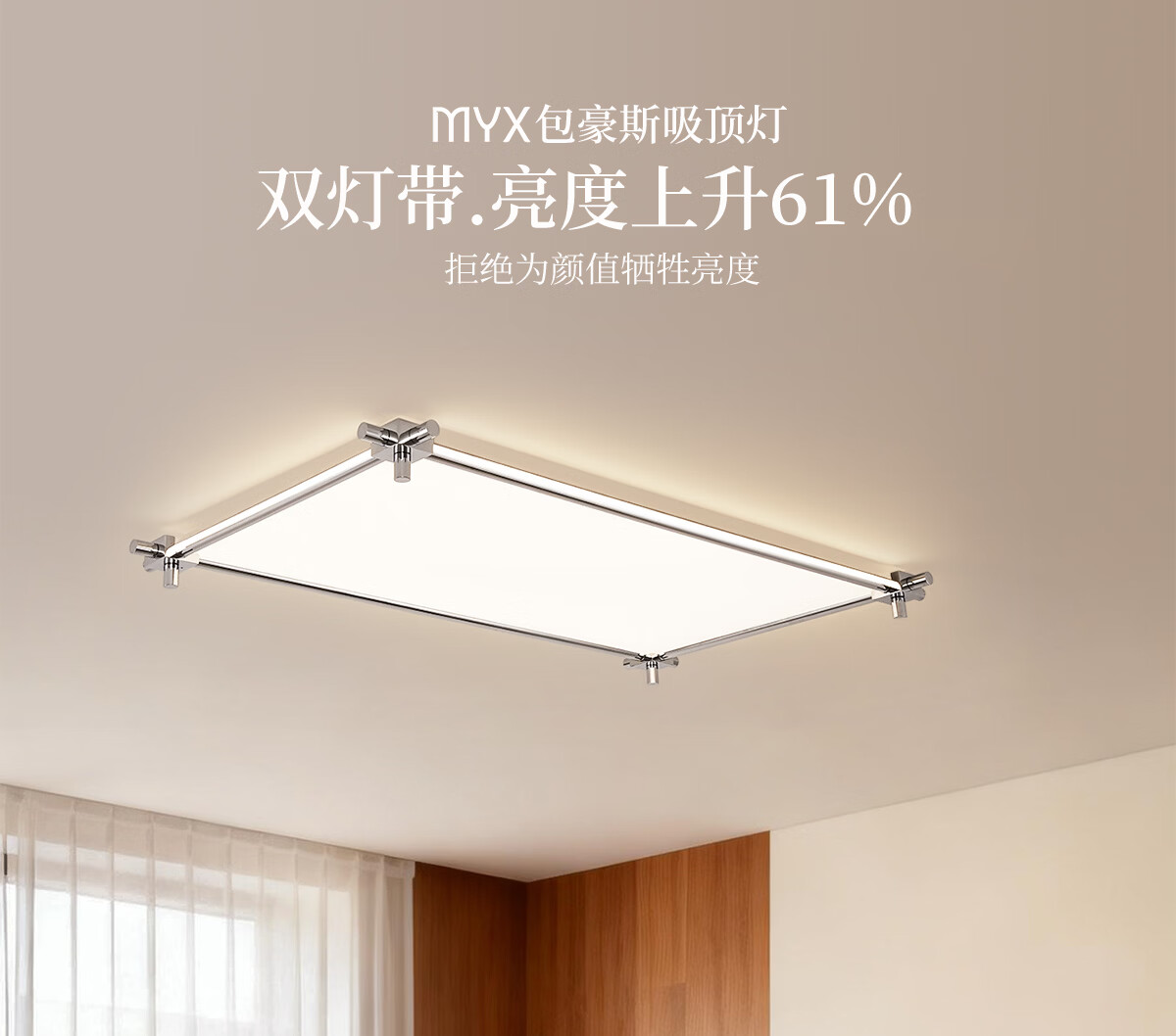 明艺轩环迹灯2026年新款护眼客厅吸顶灯超亮极简大气包豪斯客厅灯具 Pro版(普瑞)铬色-100*60cm-精灵款