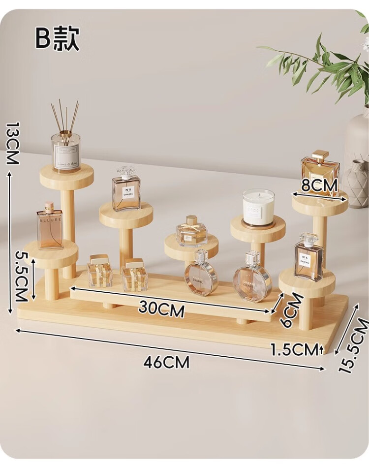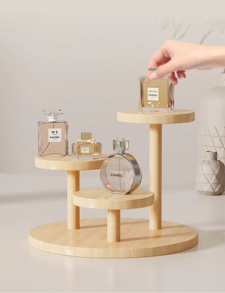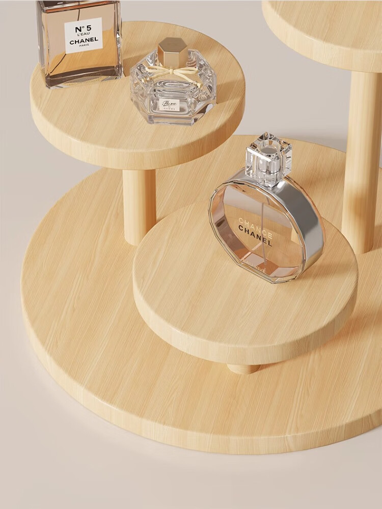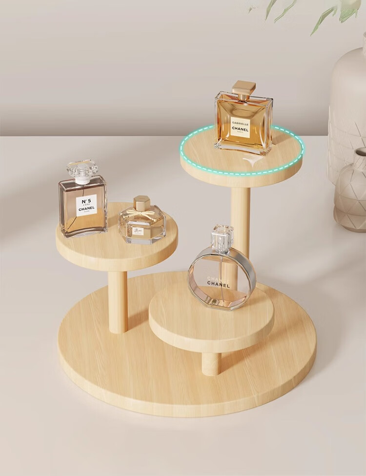 尔思家桌面置物架实木阶梯展示架木质手办小摆件花架收纳架产品展示架 圆形实木置物架-B款