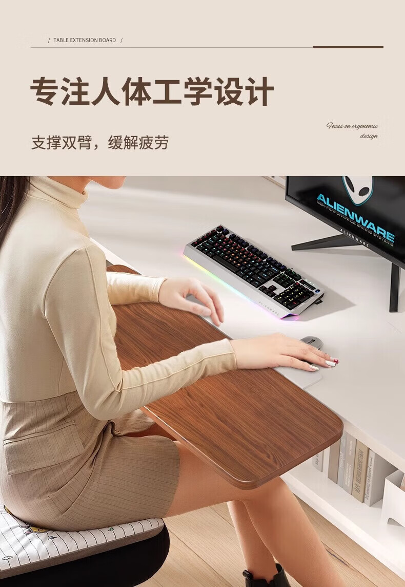 馨婺家桌面延长板桌子延伸板扩展板桌板台面加宽加长可折叠书桌支架桌边 奶油白40*20【加固承重】