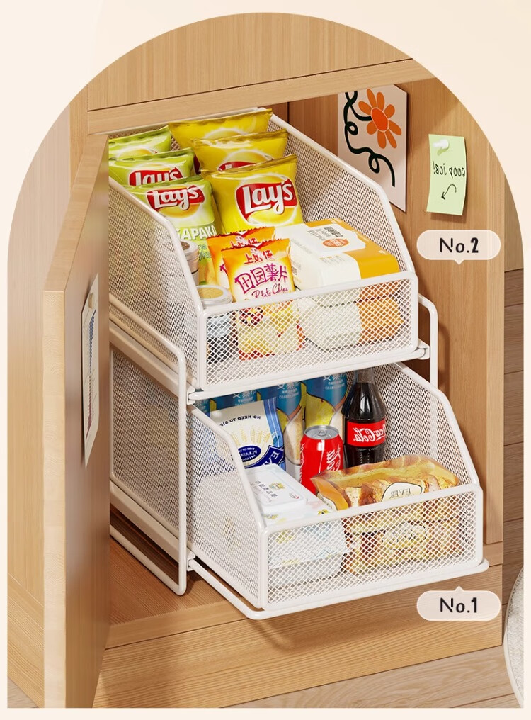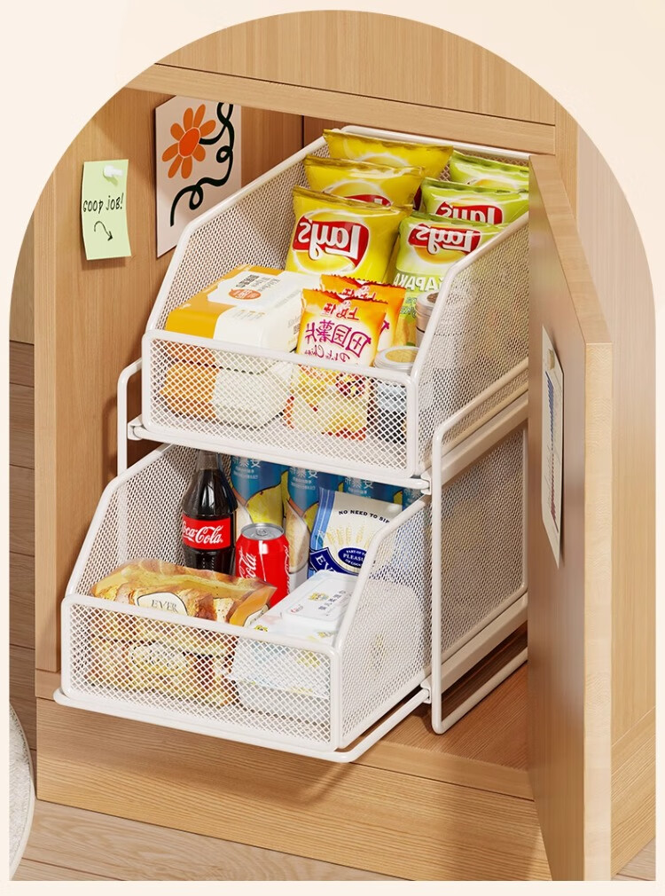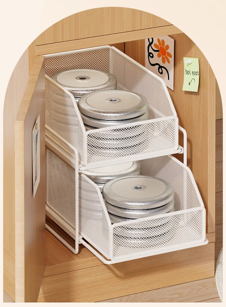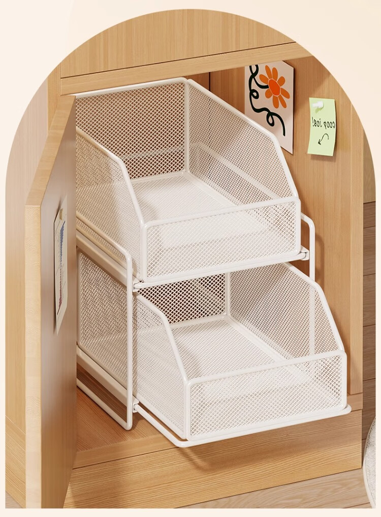 尔思家下水槽置物架浴室柜下抽拉式橱柜收纳盒多层储物分层架宿舍零食架 典雅黑三层【密网款】