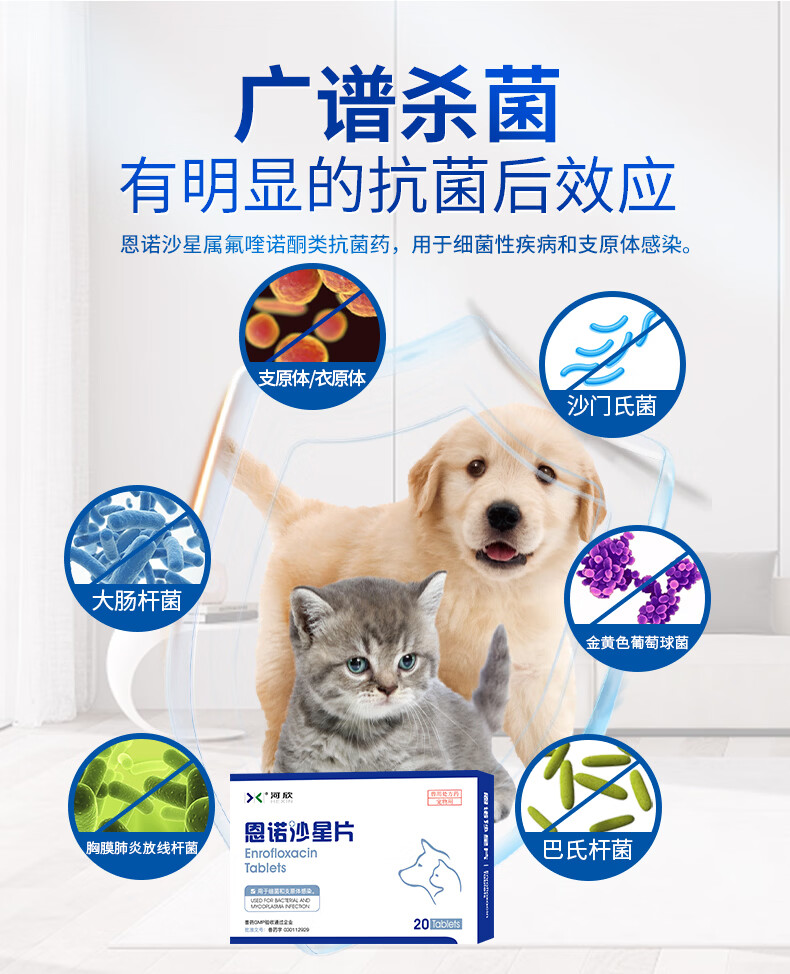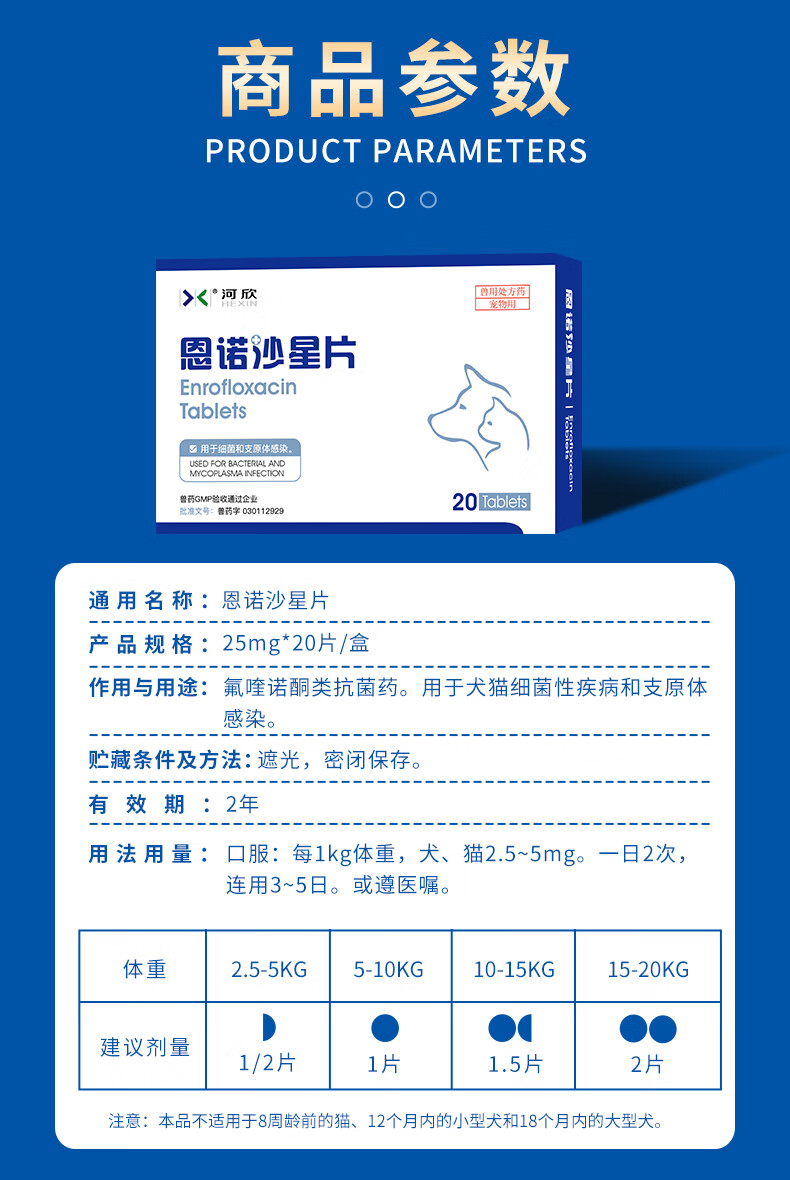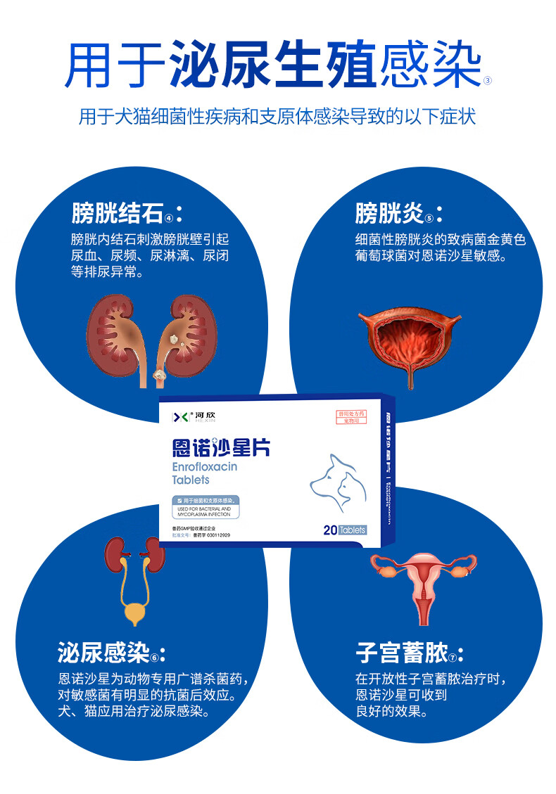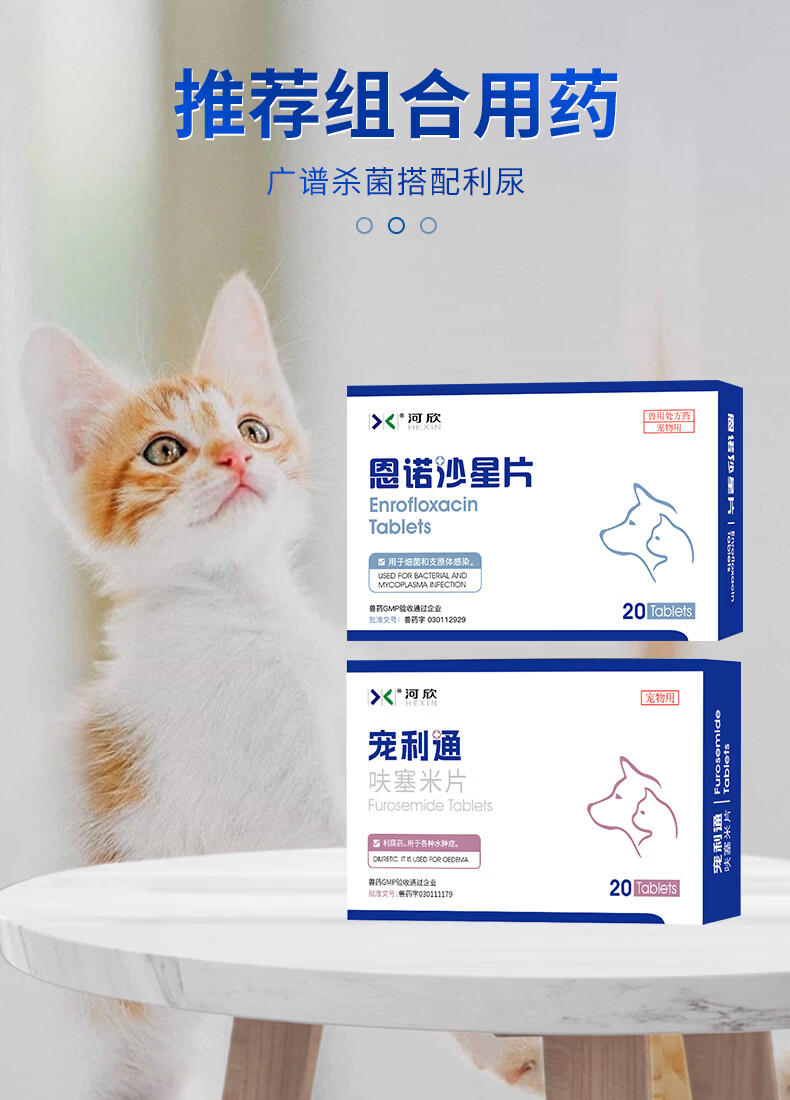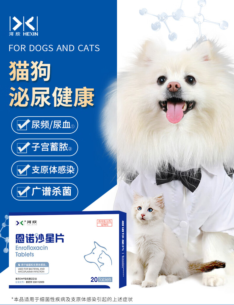 河欣宠物恩诺沙星片拜有利尿通猫咪狗狗消炎泌尿道膀胱支原体25mg/片 20片*1盒 恩诺沙星片(抗菌消炎 送喂药器)