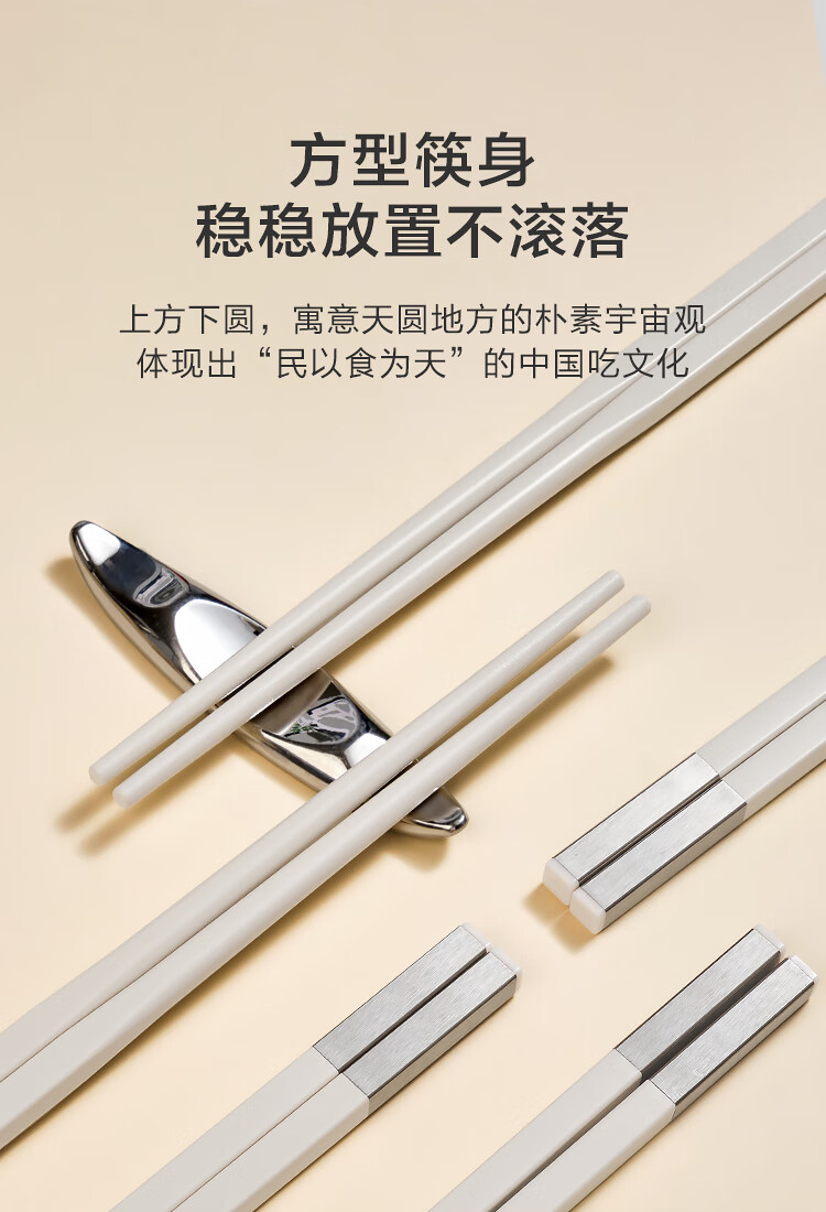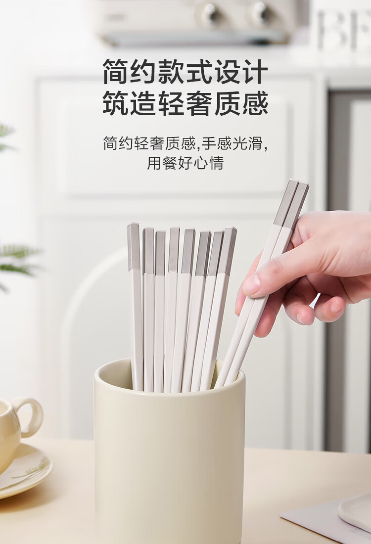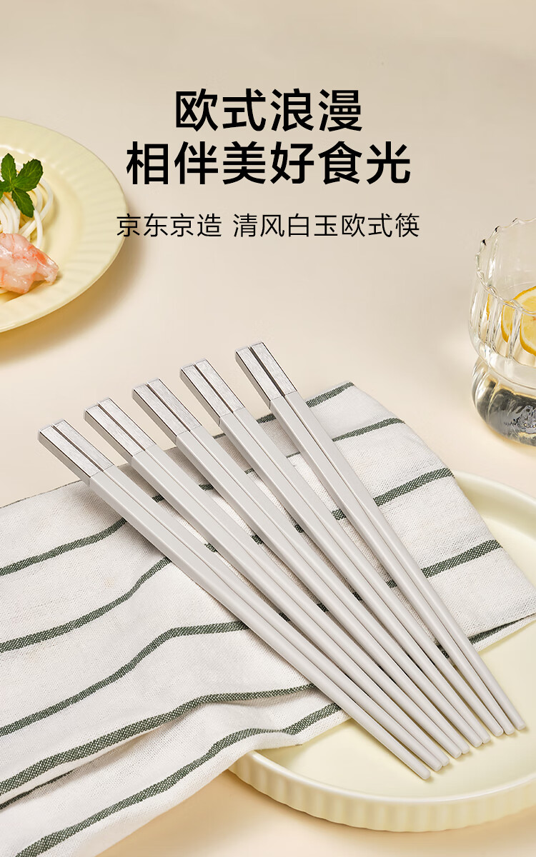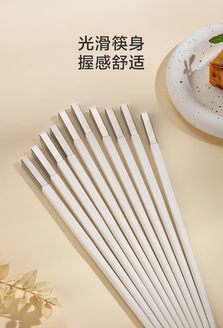京东京造 筷子 家用食品接触级餐具清合金欧式筷【健康耐用】象牙白10双装