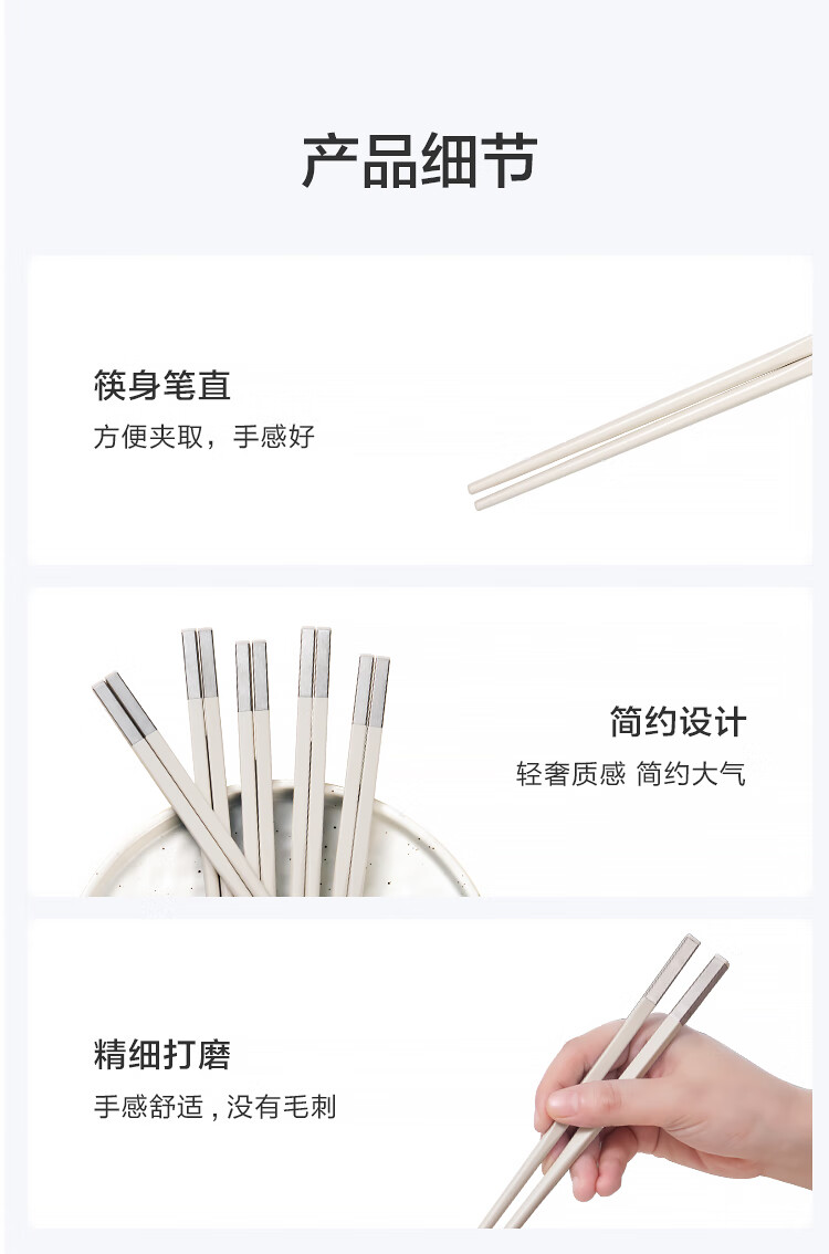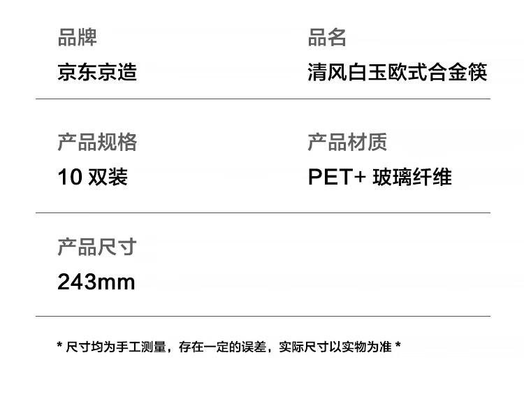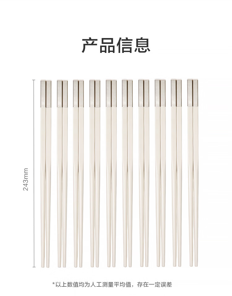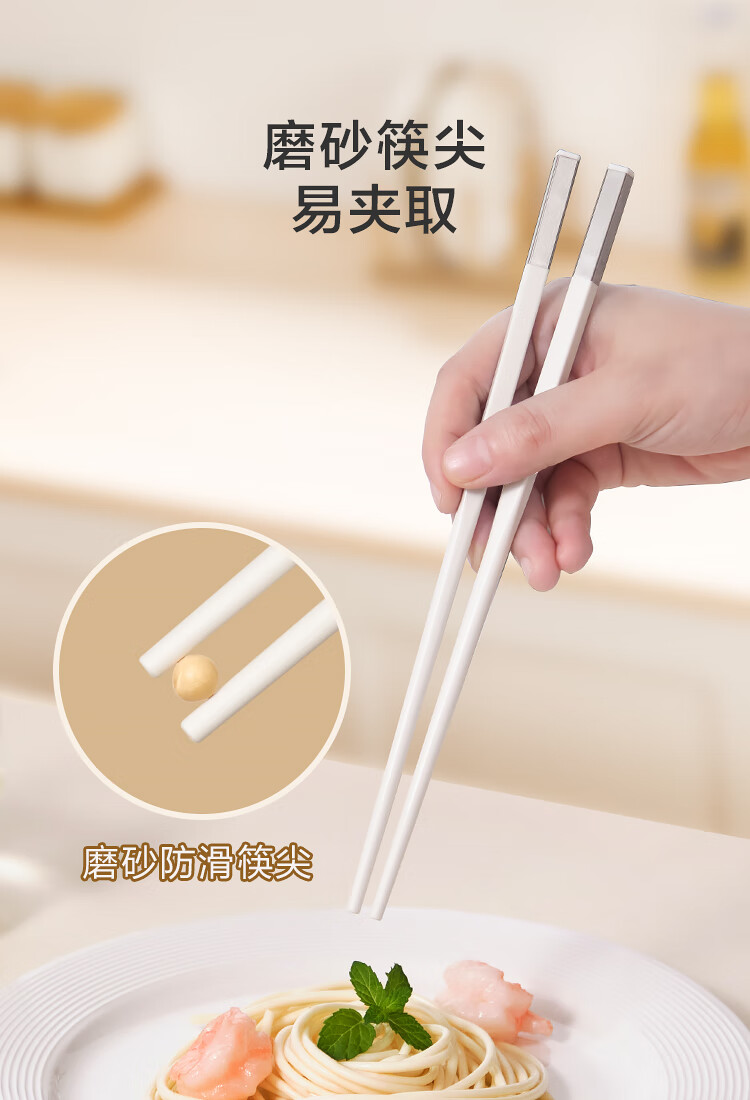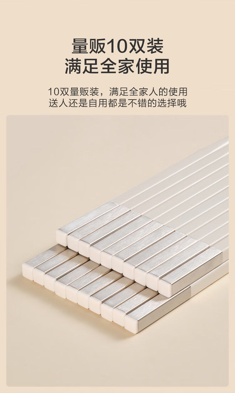 京东京造 筷子 家用食品接触级餐具清合金欧式筷【健康耐用】象牙白10双装