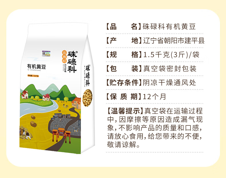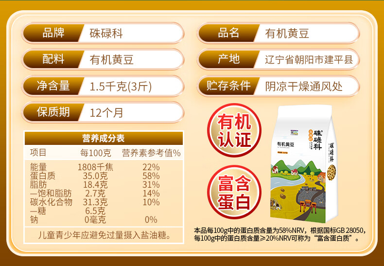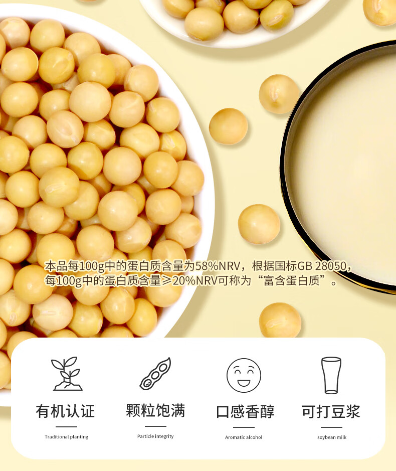 硃碌科有机黄豆3斤装 东北大豆豆浆豆 圆粒黄大豆富含蛋白非转基因