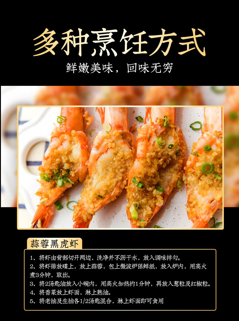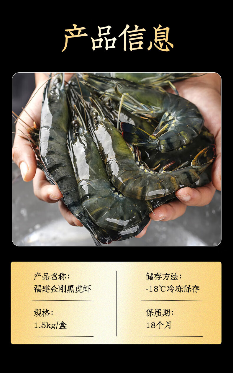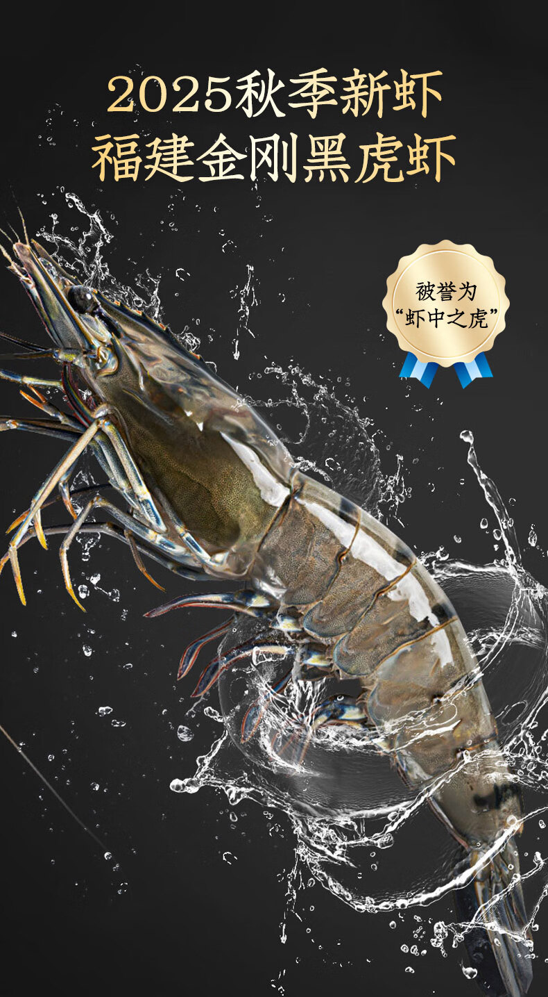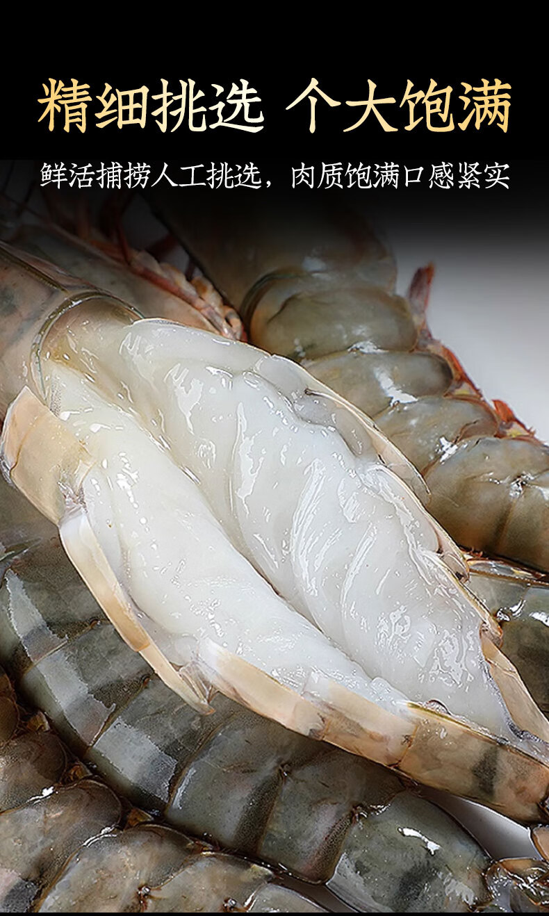 鲜京采 特大号福建活冻黑虎虾 净重3斤 30-45只/盒