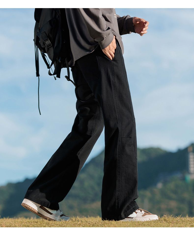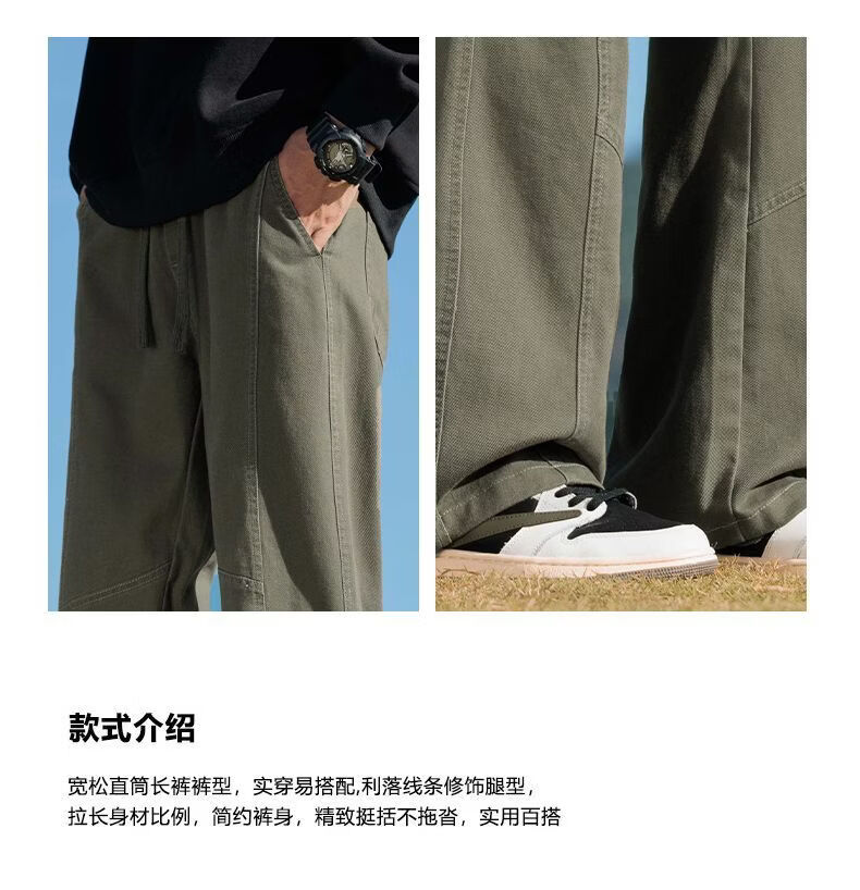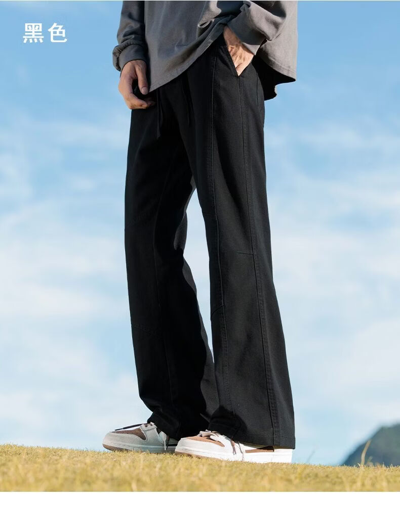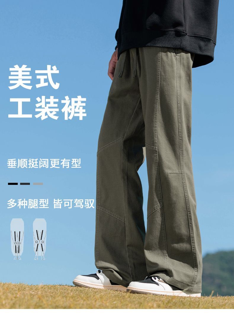 真维斯(Jeanswest)2026美式高街微喇纯棉直筒工装裤男士潮牌百搭宽松垂感休闲裤子 黑色 M