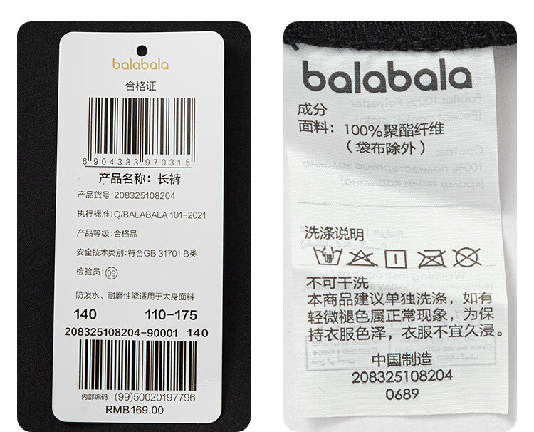 巴拉巴拉balaone童装儿童裤子男童女童长裤秋装新款防泼水萝卜裤宽松 黑色90001 150