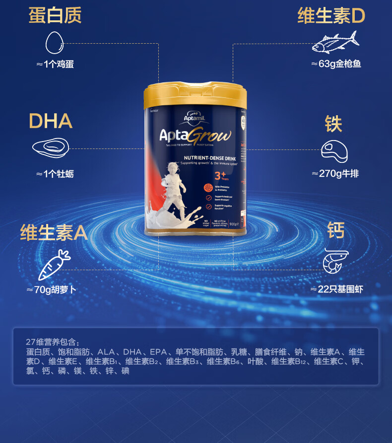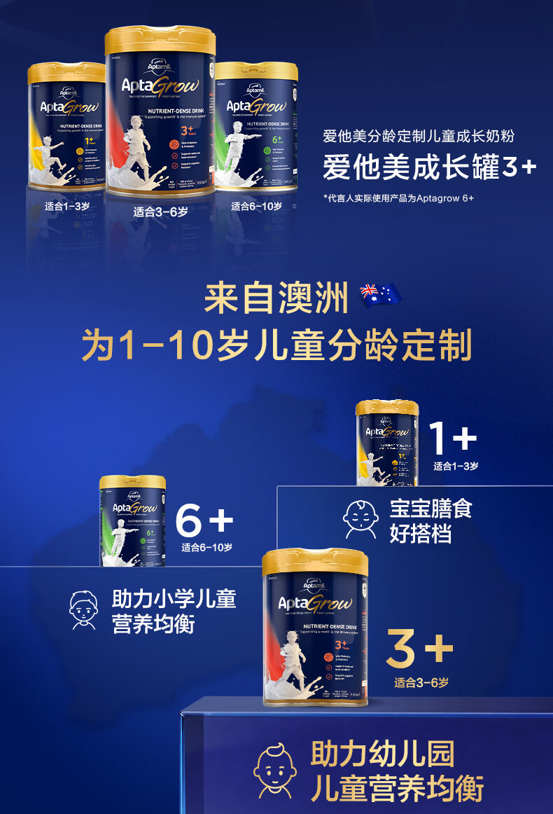 爱他美(Aptamil)爱他美成长罐aptagrow儿童成长奶粉分龄精准营养3+段3岁以上单罐