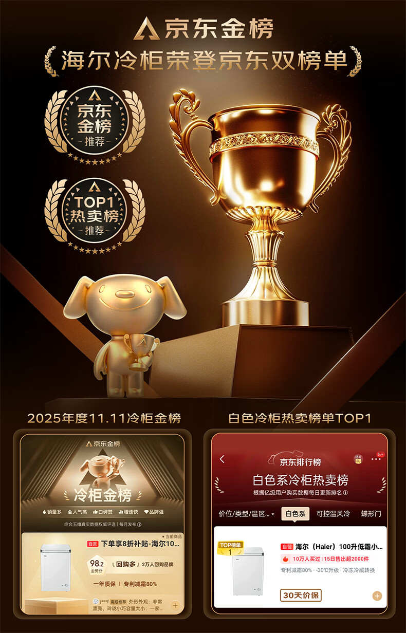 海尔(Haier)100L单温冰柜小型家用小冰柜商用减霜一级能效冷藏冷冻转换深冷冷柜小冰箱BC/BD-100GHW9D国家补贴