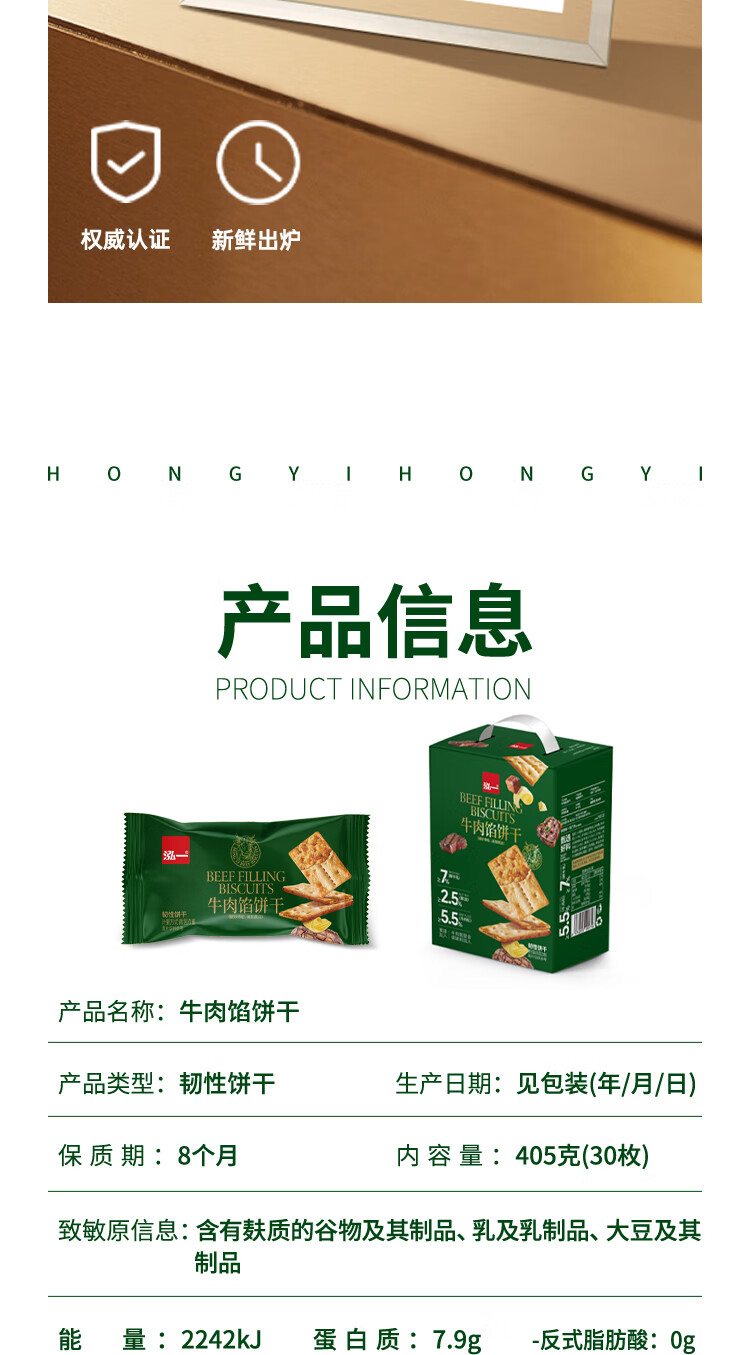 【好评率99%】牛肉馅酥脆夹心饼干整箱高颜值下午茶回购多 泓一135g牛肉饼干【10包】