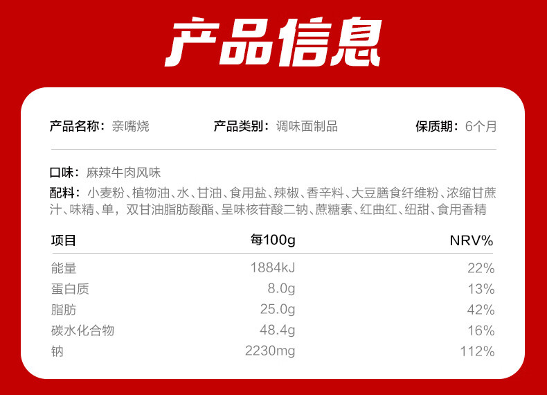 卫龙 亲嘴烧 480g/盒 香辣味【魔道祖师联名】休闲零食 解馋小零食