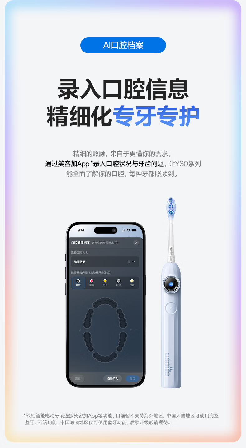 usmile笑容加智能电动牙刷 AI智能化新动力大摆幅 Y30云暮紫 情人节礼物 送男友送女友