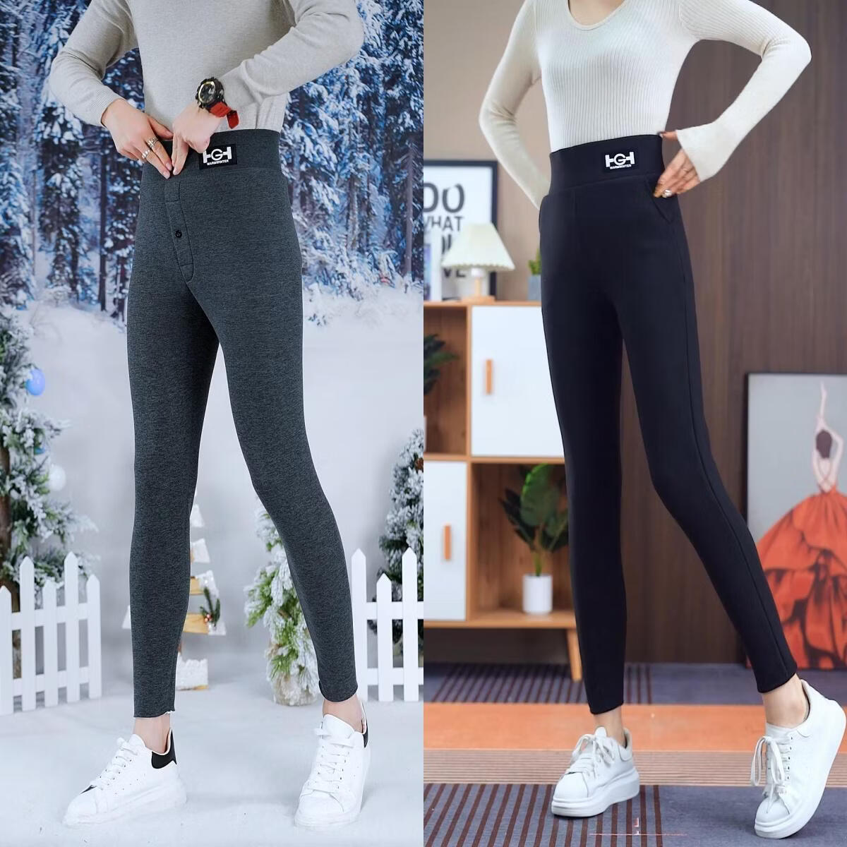 【买一送一】专柜新款冬季加绒加厚打底裤高腰紧身大码棉裤xby 黑色+灰色各一条 3XL (适合170-190斤)