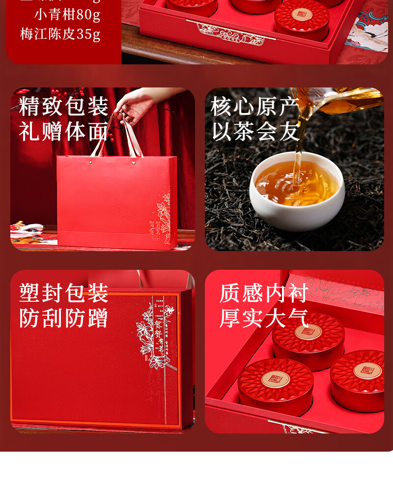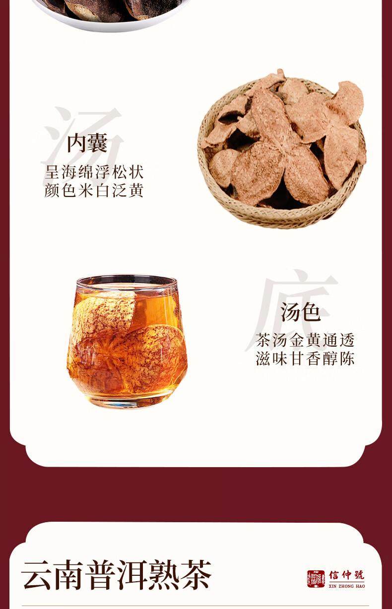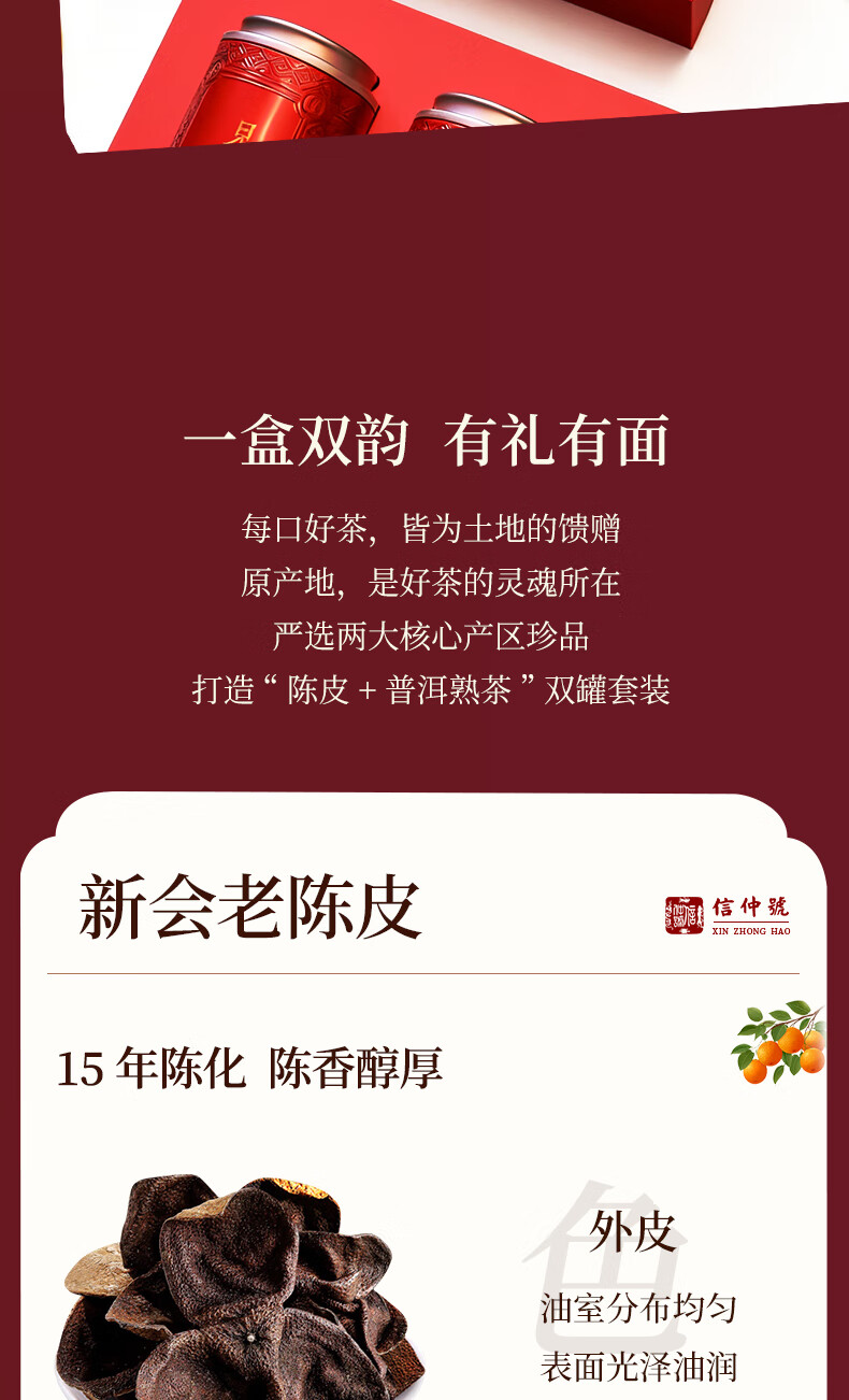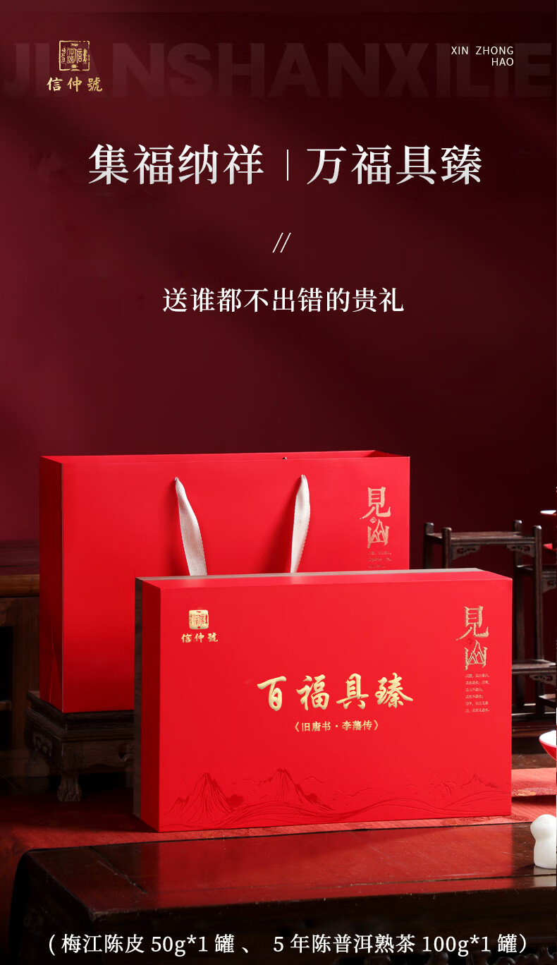 信仲号茶叶组合礼盒 普洱熟茶散茶新会老陈皮春节送礼茗茶 百福具臻茶叶礼盒 150g*1盒