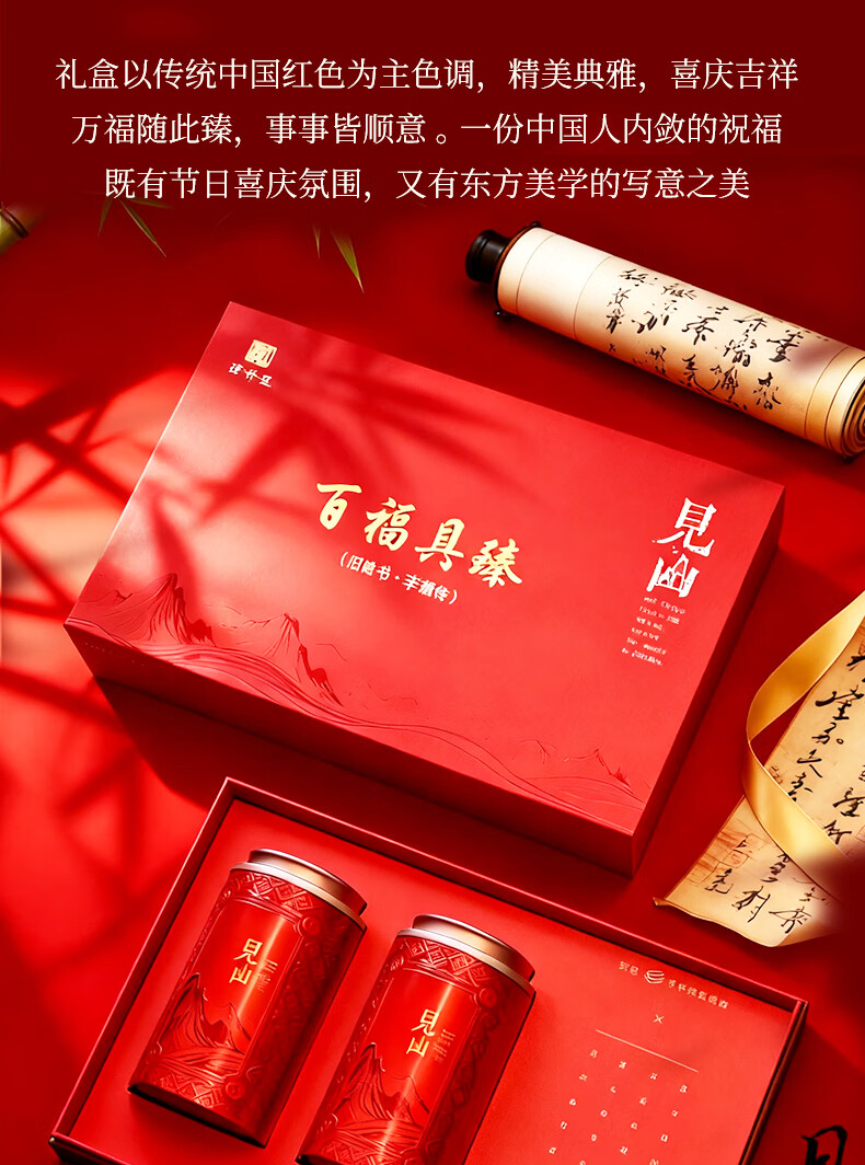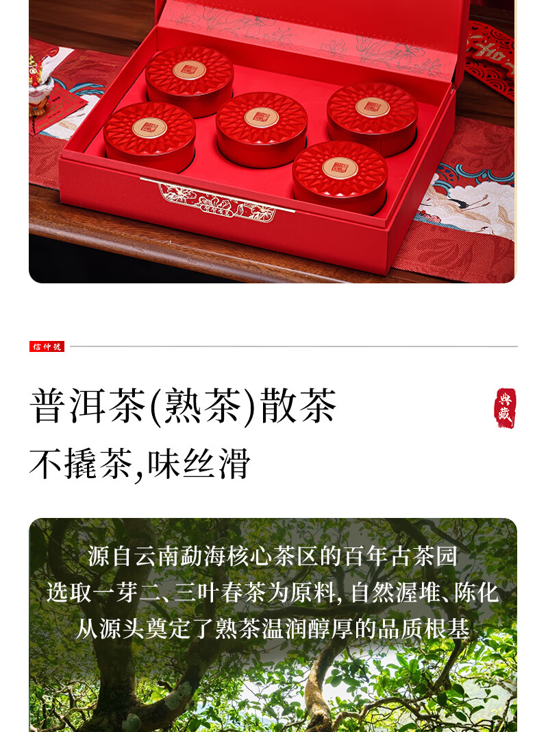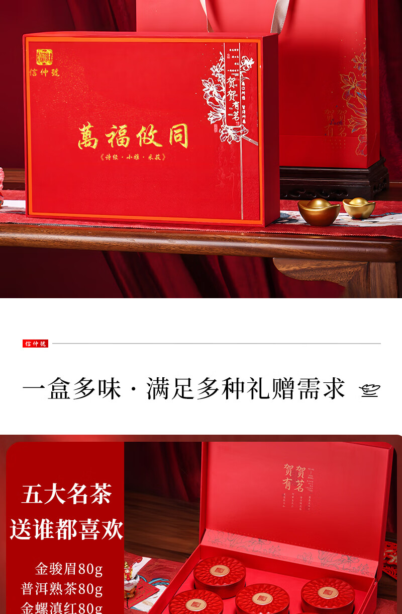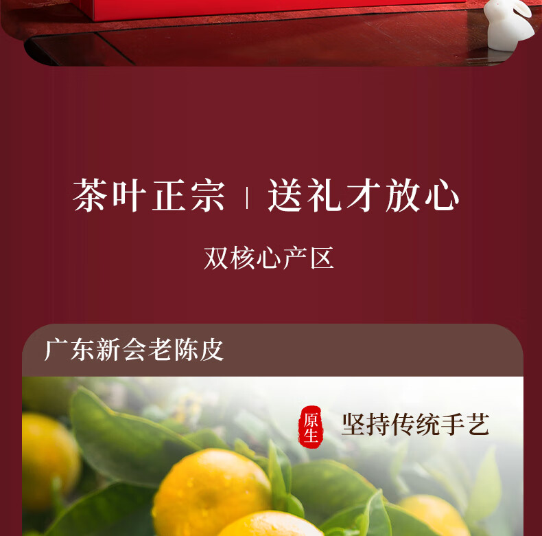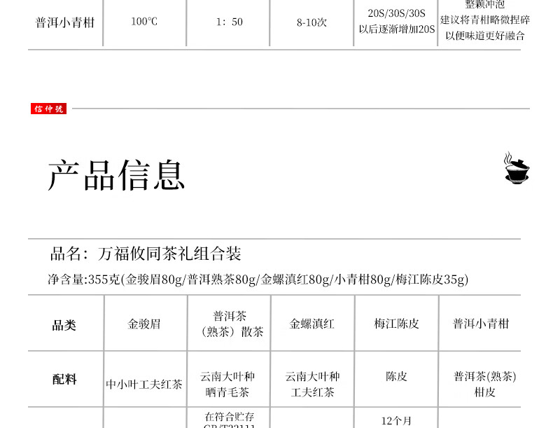 信仲号茶叶组合礼盒 普洱熟茶散茶新会老陈皮春节送礼茗茶 百福具臻茶叶礼盒 150g*1盒