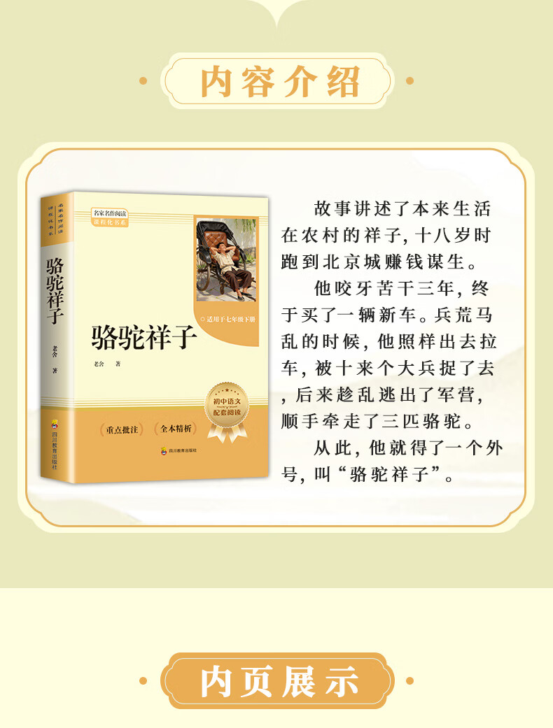 骆驼祥子和钢铁是怎么样炼成的 钢铁是怎样炼成的七年级下册人教版教材配套阅读上册 人民教育出版社教材配套阅读 初中版名著初一必读课外书目初中生读物课外阅读书籍正版原著完整版无删西游记 朝花夕拾 七下-骆