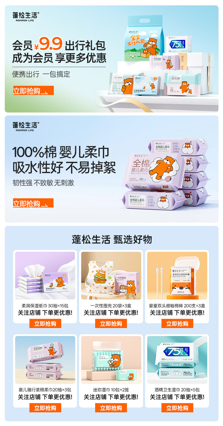 蓬松生活 洗脸巾一次性绵柔巾大包加厚洁面巾干湿两用婴幼儿擦屁屁 【双色款】大包80抽*5包