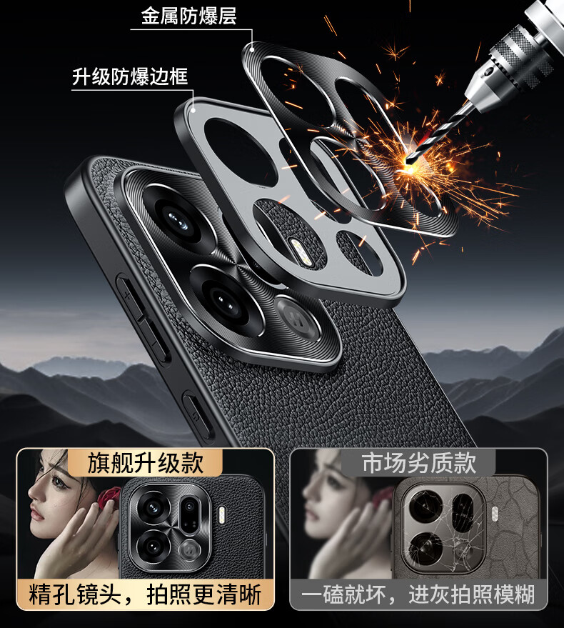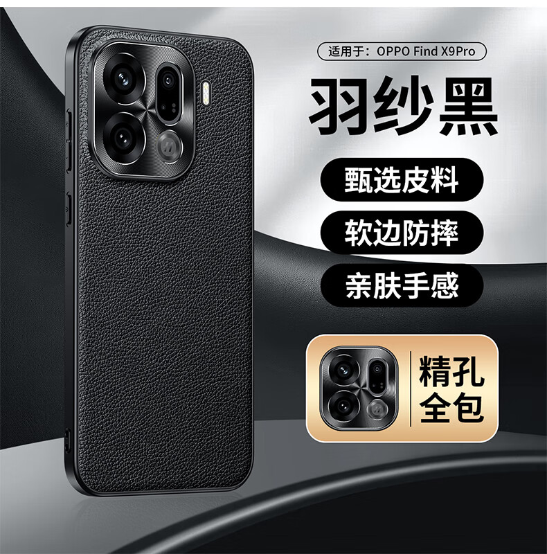 麦焕OPPO FindX9pro手机壳防摔Findx9金属镜头全包保护套头层牛皮轻奢商务保护壳 findX9pro【黑色】抗震防摔、不沾指纹