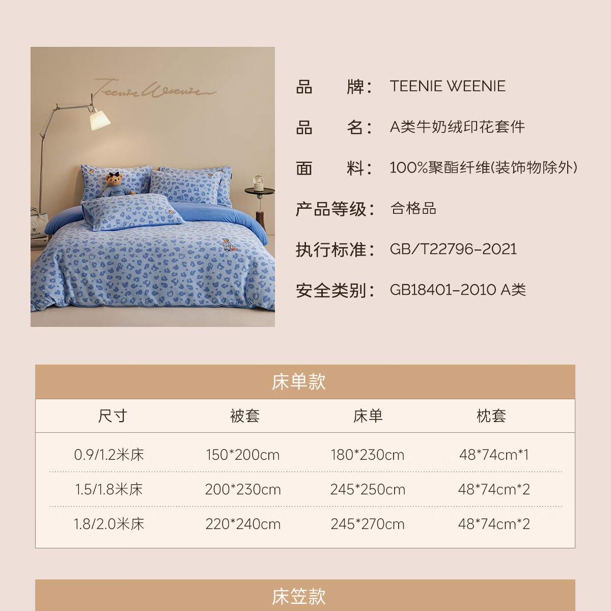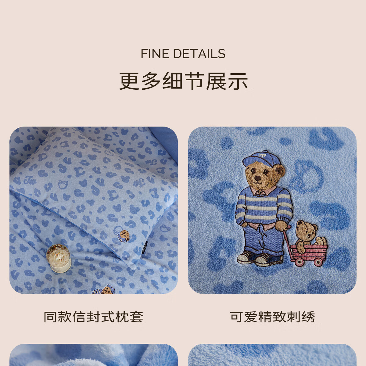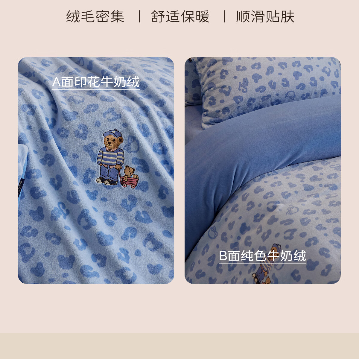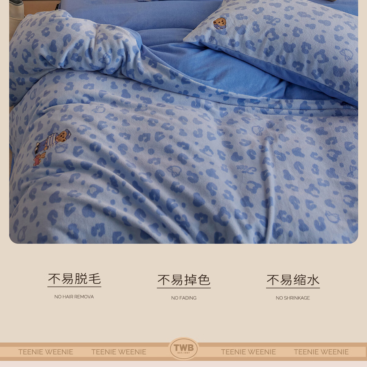 Teenie Weenie小熊A类豹纹牛奶绒加厚四件套秋冬保暖珊瑚绒被套法兰绒套件 小熊豹豹系列-粉 1.5/1.8m 床单款 被套200*230cm